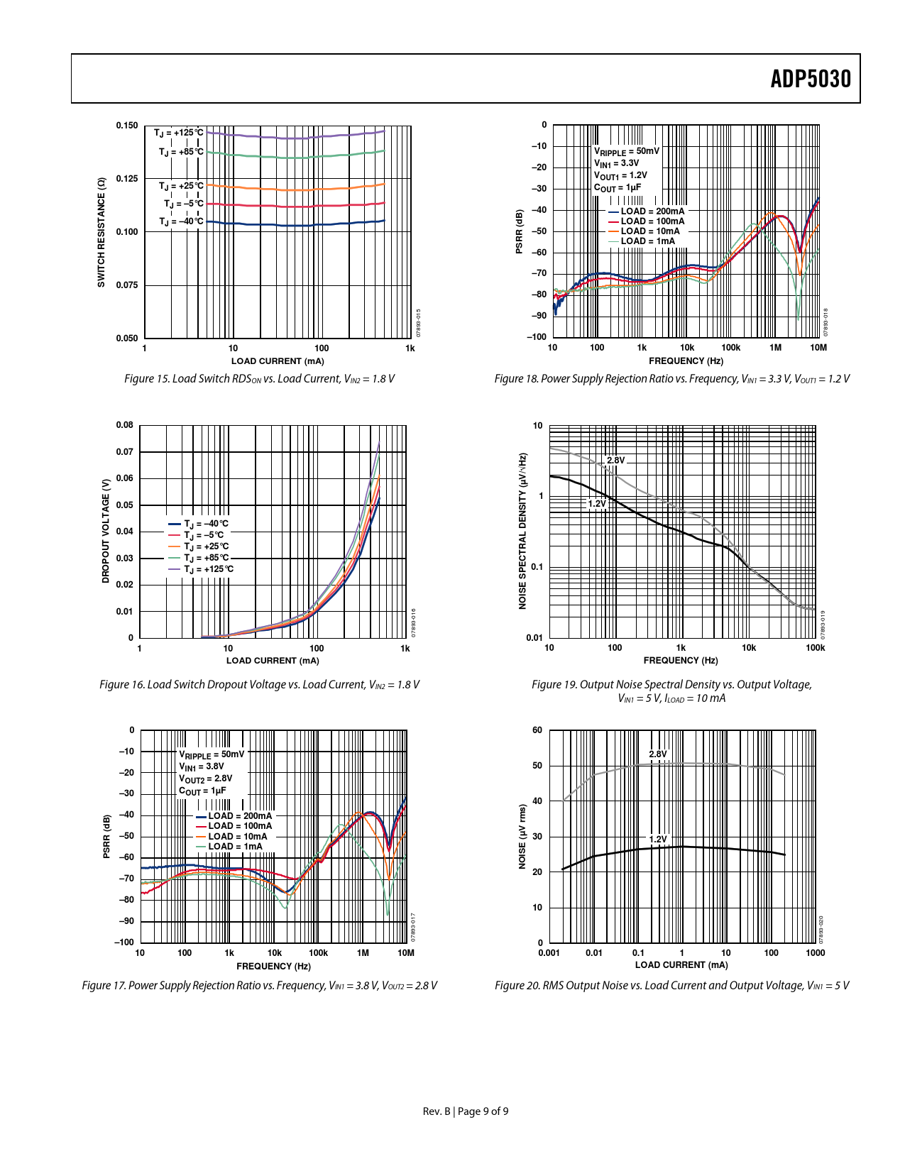| Pages / Page | 20 / 9 — ADP5030. 0.150. TJ = +125°C. –10. J = +85°C. RIPPLE = 50mV. –20. IN1 = … |