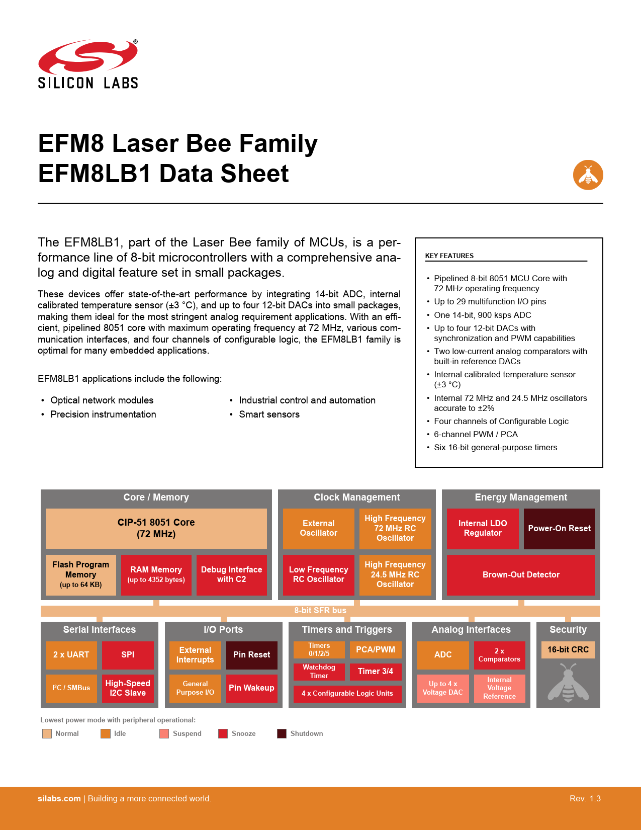 EFM8 Laser Bee Family EFM8LB1 Data Sheet. KEY FEATURES. Core / Memory. Clock Management. Energy Management. CIP-51 8051 Core