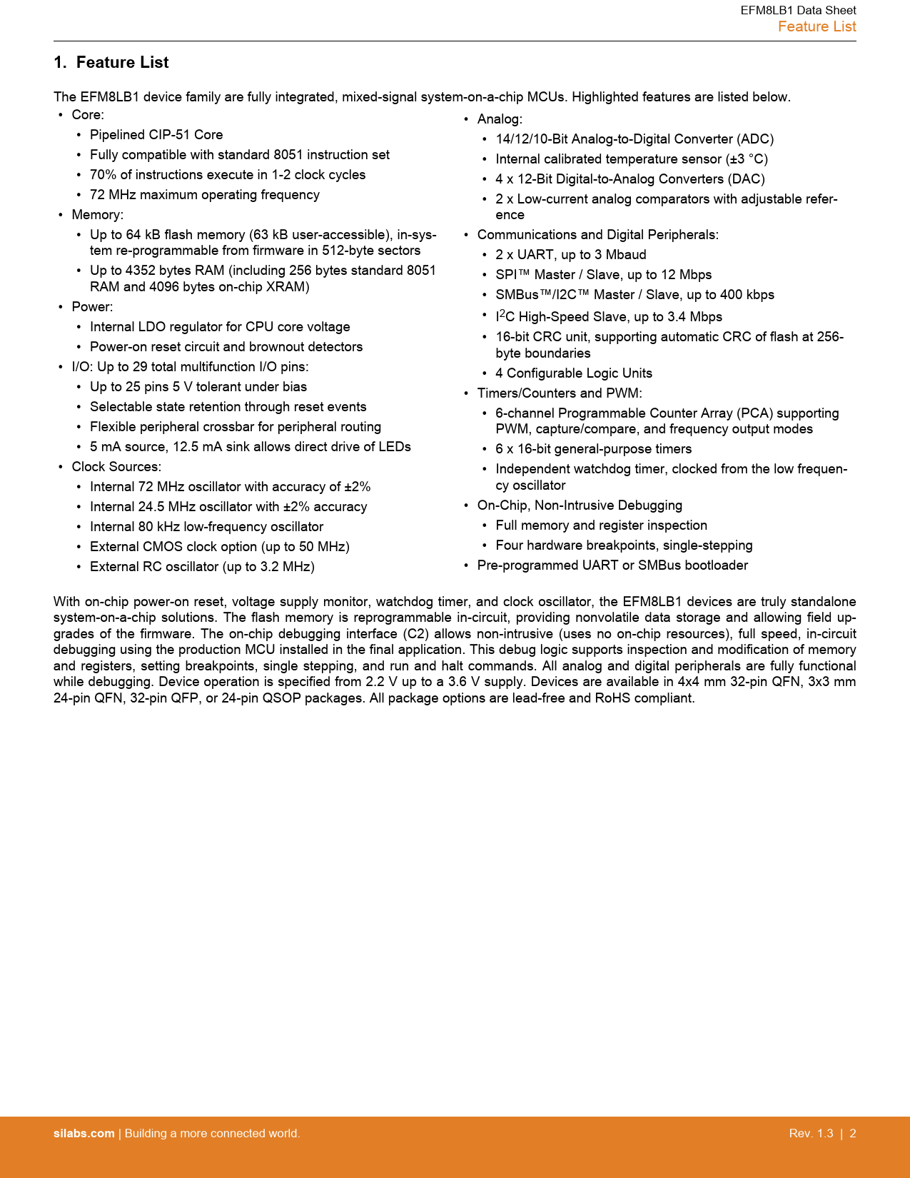 EFM8LB1 Data Sheet Feature List