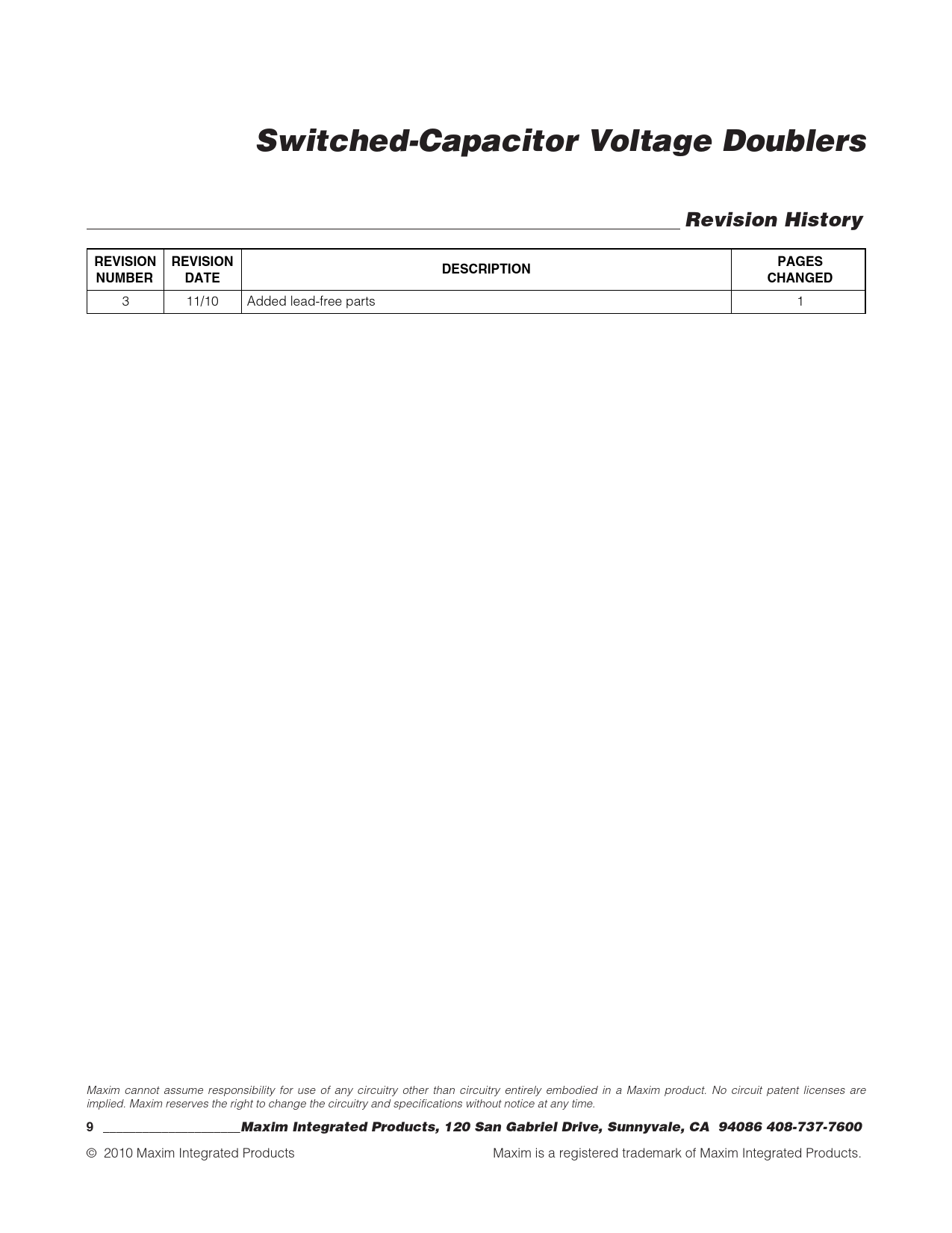 | Pages / Page | 9 / 9 — Switched-Capacitor Voltage Doublers. Revision History. REVISION. PAGES. … |