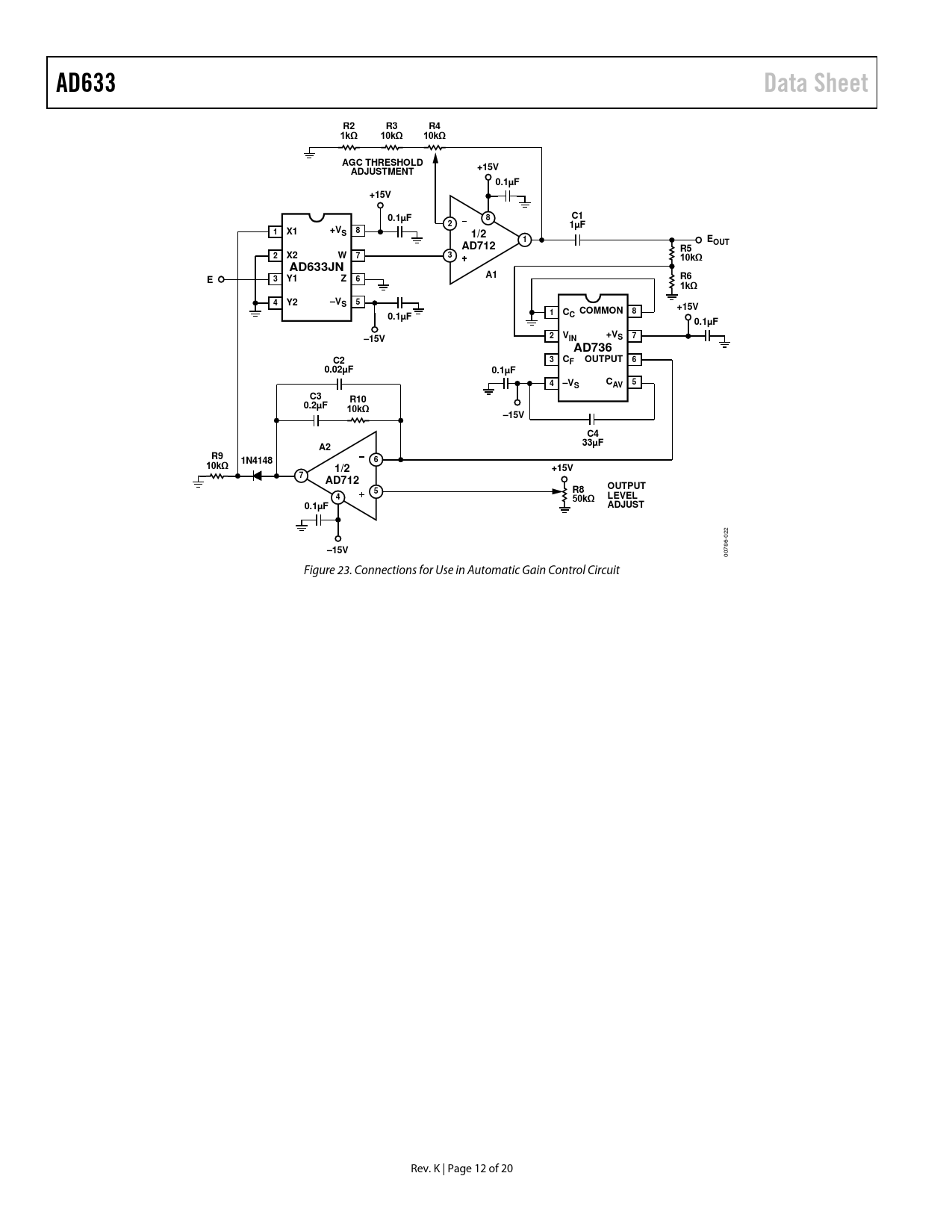 Pages / Page20 / 12 — AD633. Data Sheet. 1kΩ. 10kΩ. AGC THRESHOLD. +15V. ADJUSTMENT. 0.1µF. …