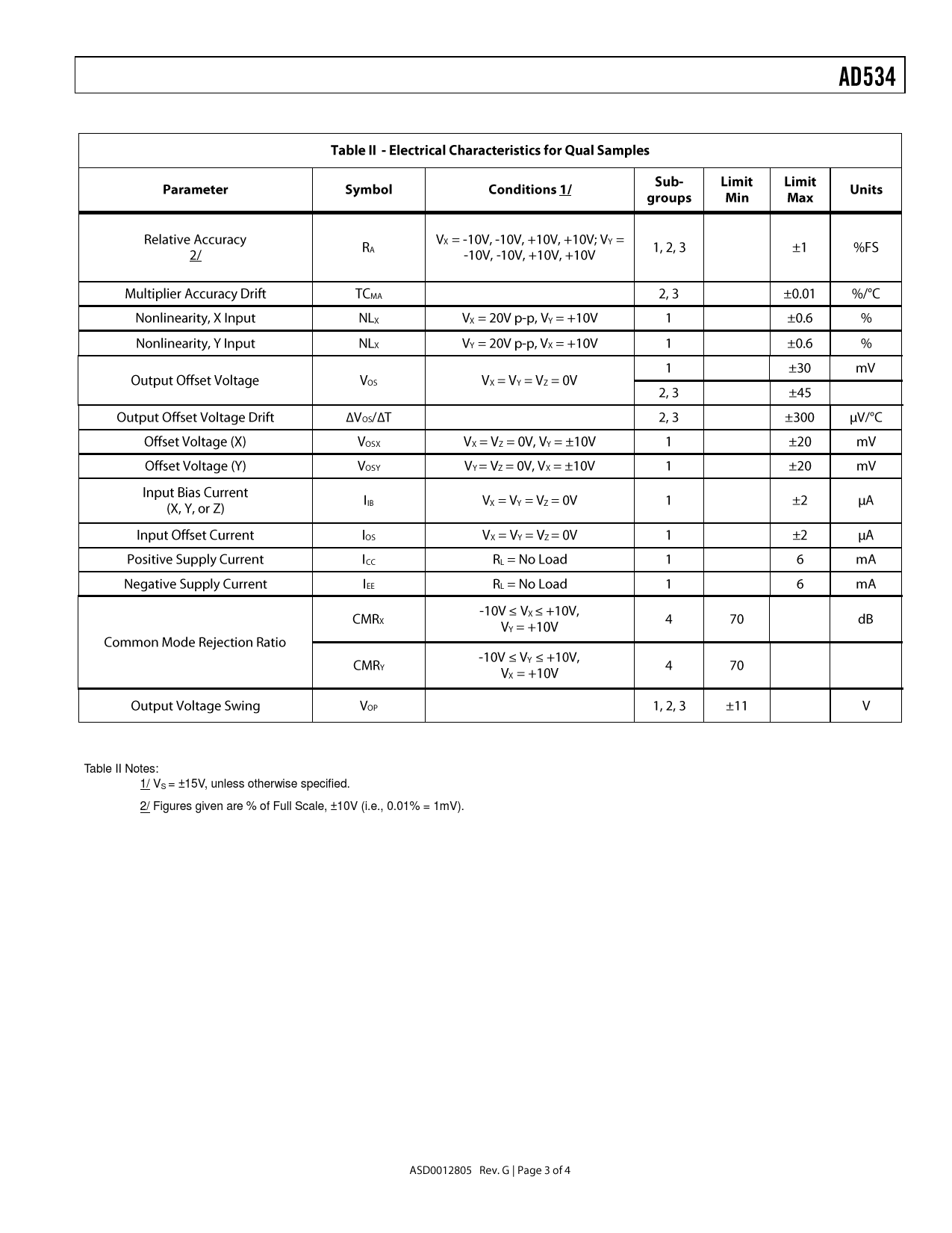 | Pages / Page | 4 / 3 — Table. II. Notes:. 1/. VS. =. ±15V,. unless. otherwise. specified. 2/. … |