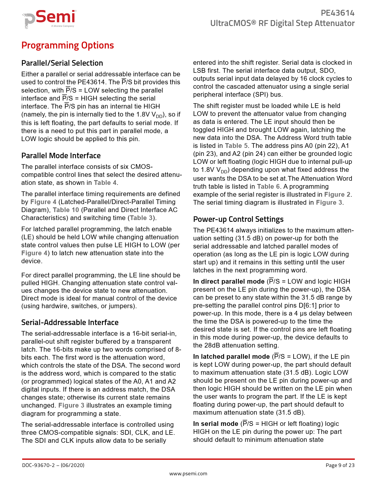 Pages / Page23 / 9 — PE43614. UltraCMOS® RF Digital Step Attenuator. Programming Options Paral …