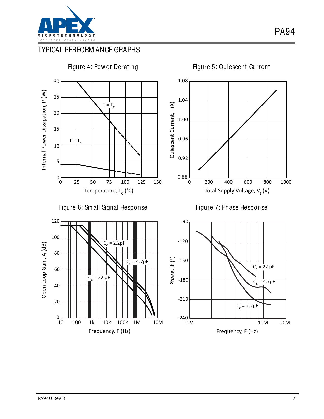 PA94. TYPICAL PERFORMANCE GRAPHS. Figure 4: Power Derating. Figure 5: Quiescent Current. Figure 6: Small Signal Response