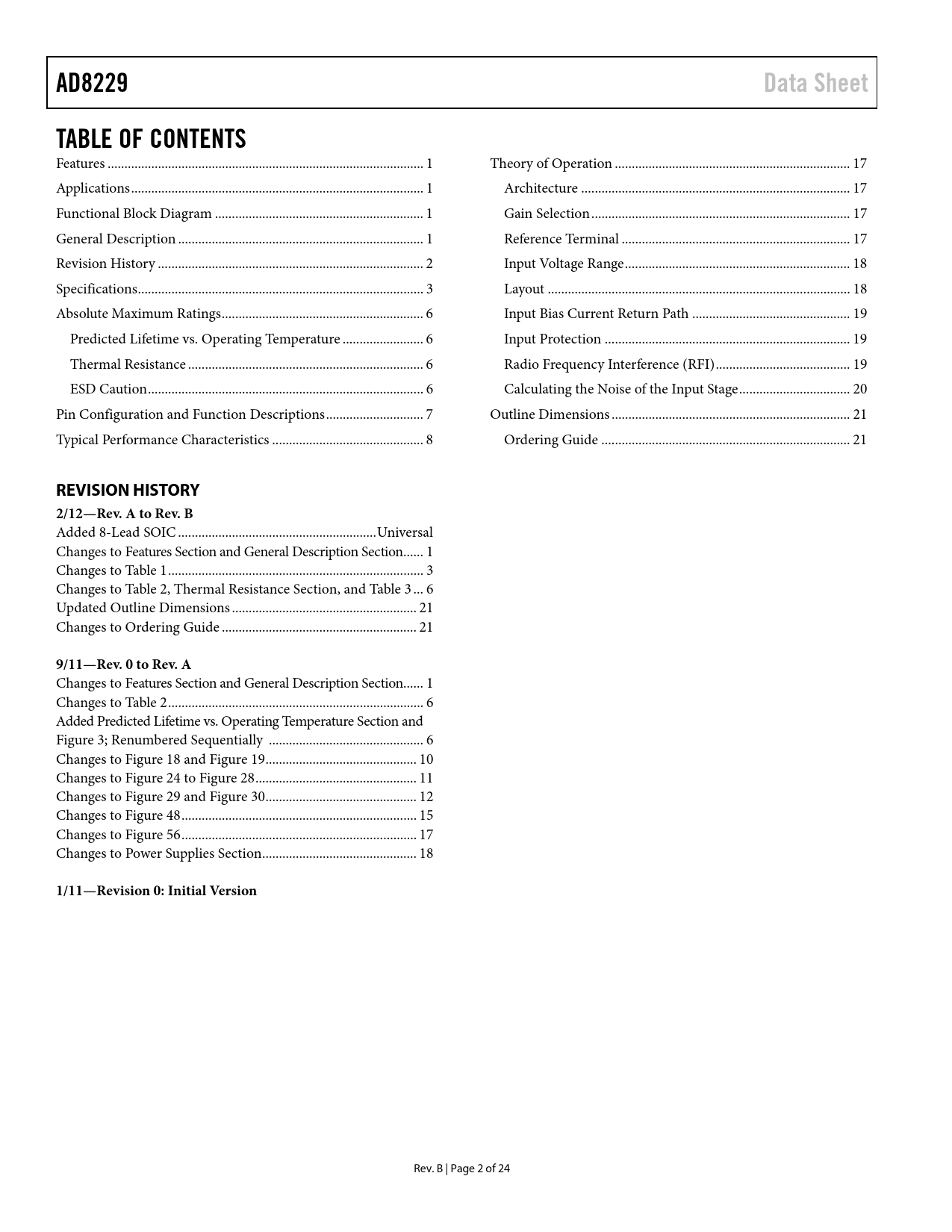 Pages / Page24 / 2 — AD8229. Data Sheet. TABLE OF CONTENTS. REVISION HISTORY 2/12—Rev. A to …