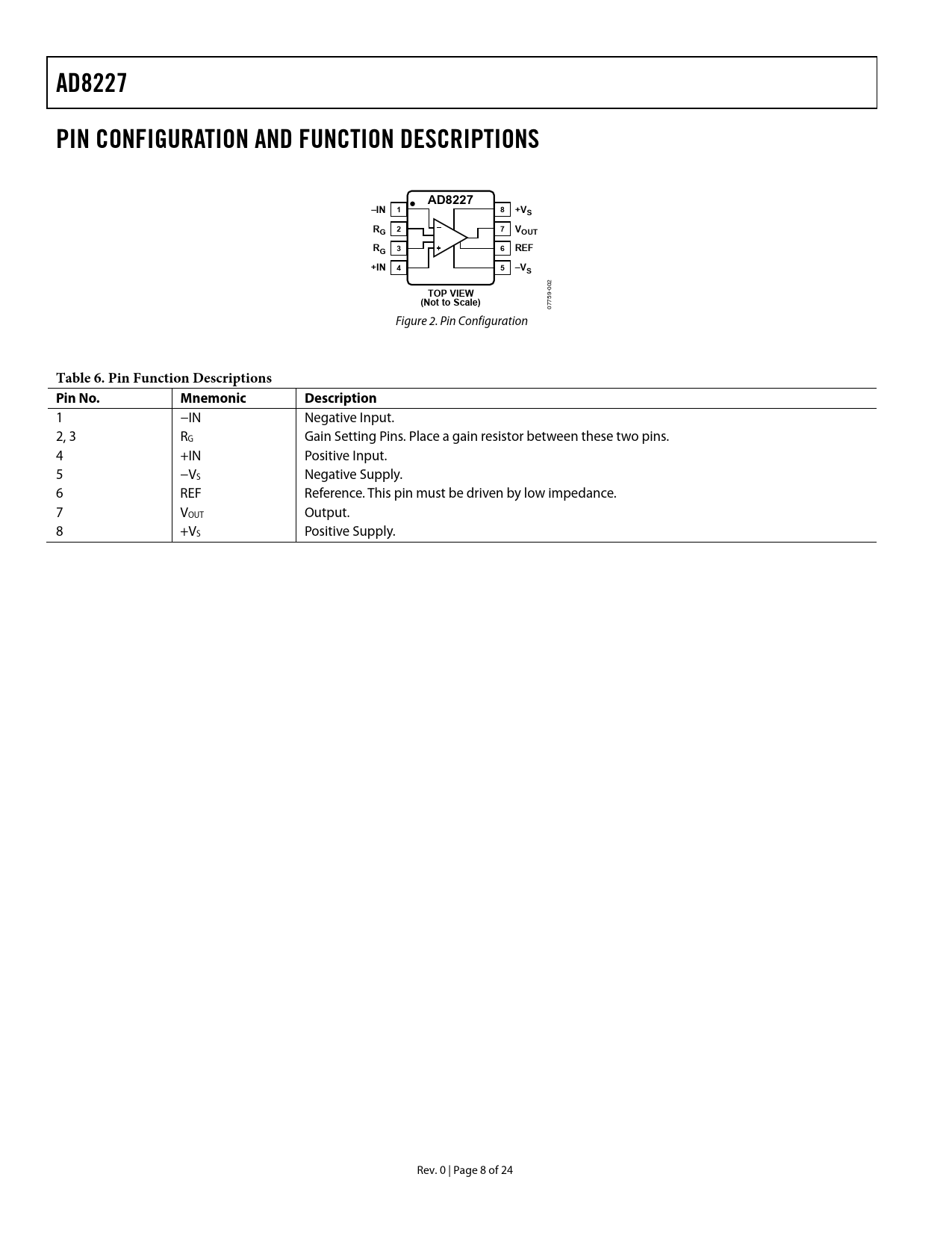 Pages / Page24 / 8 — AD8227. PIN CONFIGURATION AND FUNCTION DESCRIPTIONS. –IN. +VS. RG 2. …