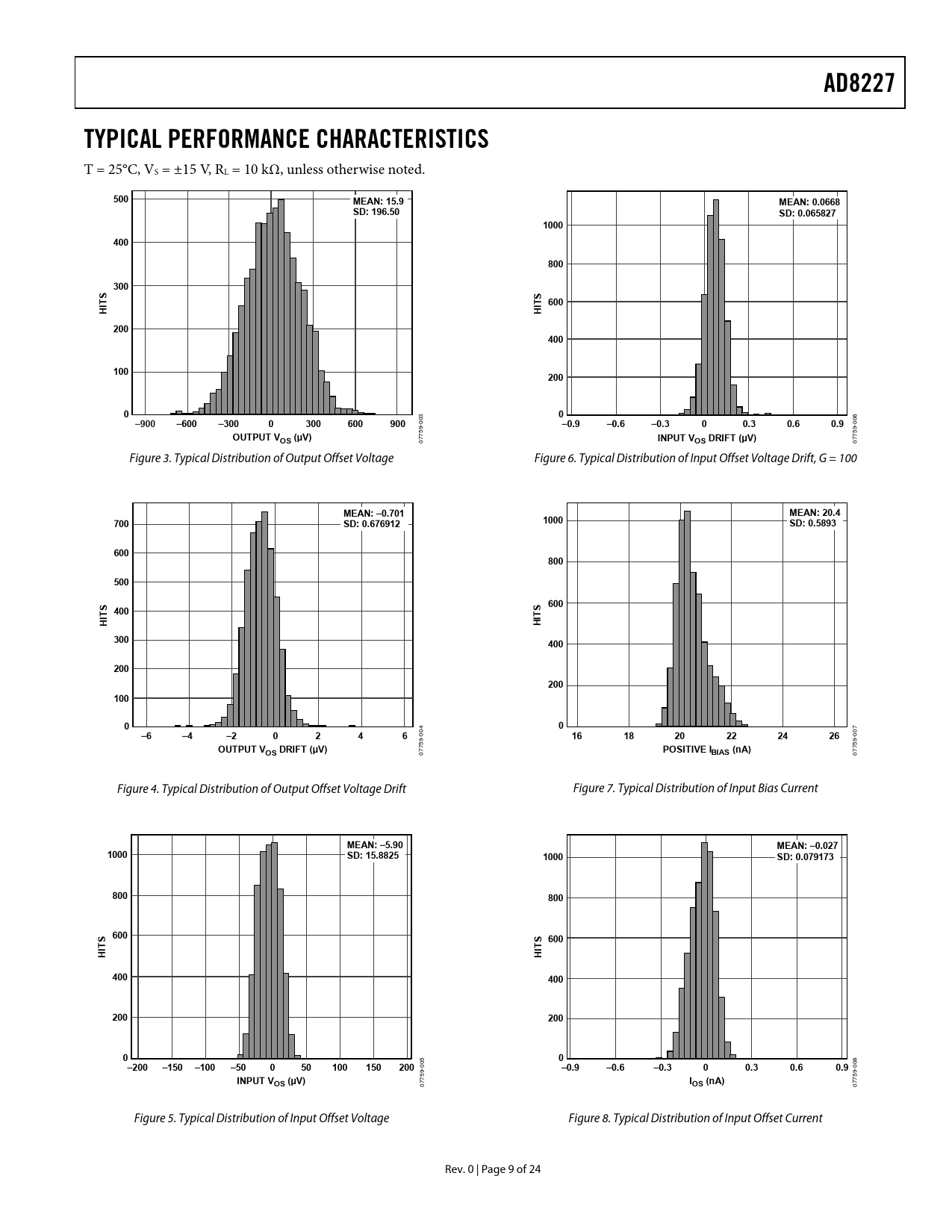 AD8227. TYPICAL PERFORMANCE CHARACTERISTICS. 500. MEAN: 15.9. MEAN: 0.0668. SD: 196.50. SD: 0.065827. 1000. 400. 800. 300. T 600. 200. 100. –900
