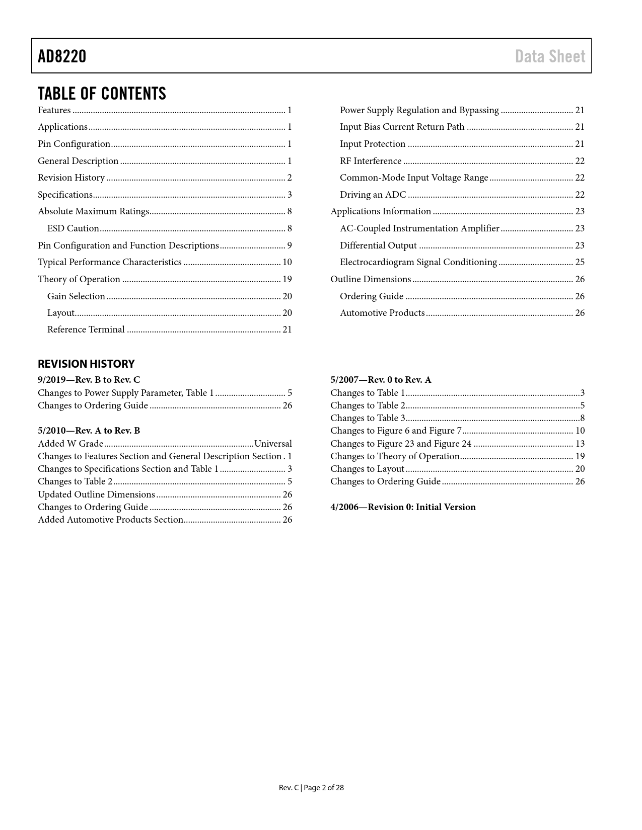 REVISION HISTORY 9/2019—Rev. B to Rev. C 5/2007—Rev. 0 to Rev. A