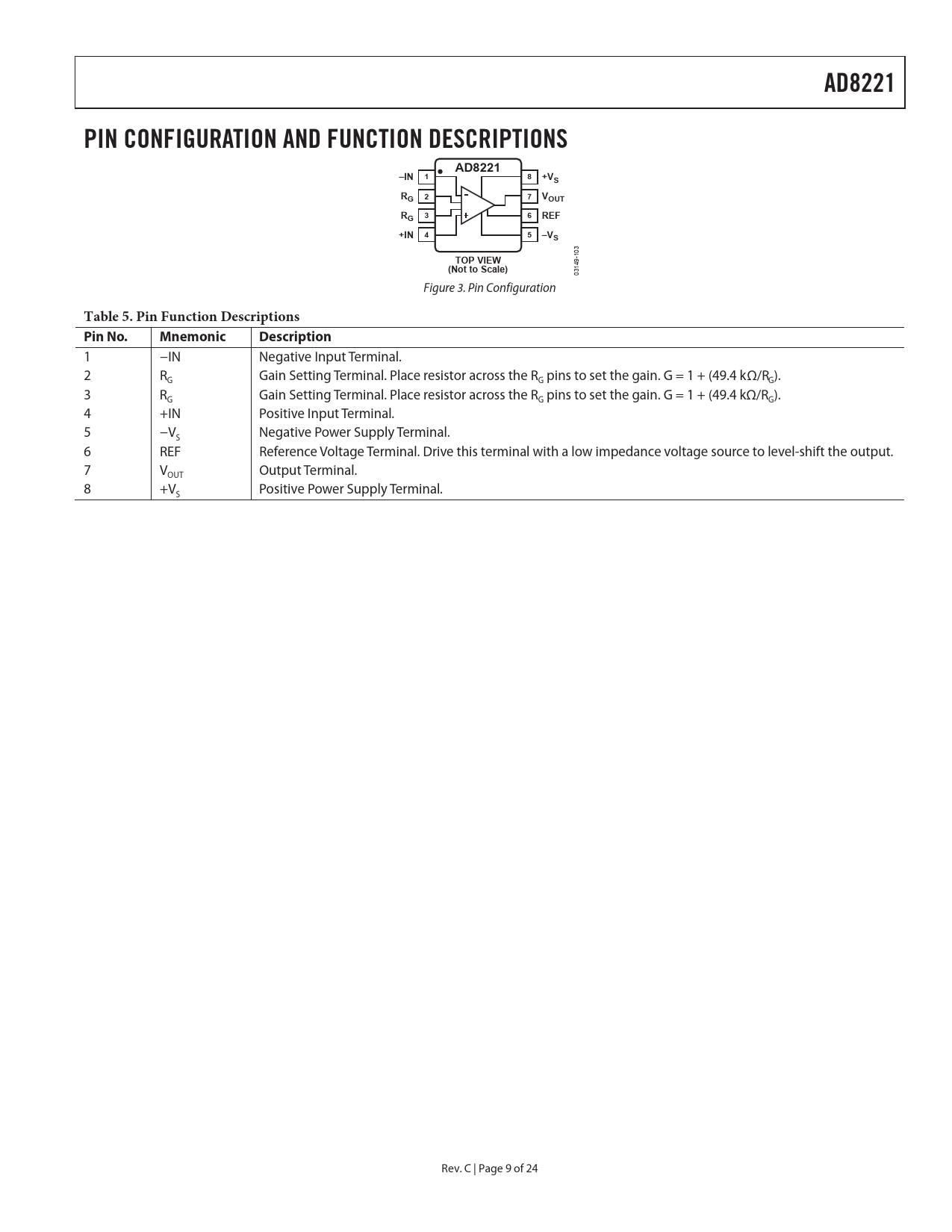 Pages / Page24 / 9 — AD8221. –IN. +VS. VOUT. REF. +IN. –VS. TOP VIEW. (Not to Scale). Table 5. …