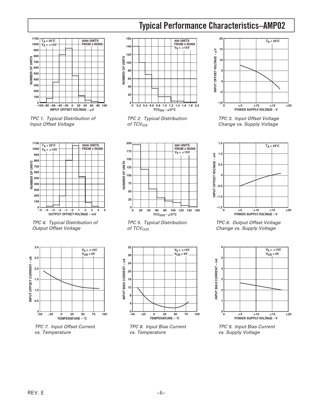 TPC 1. Typical Distribution of TPC 2. Typical Distribution TPC 3. Input Offset Voltage Input Offset Voltage of TCVIOS Change vs. Supply Voltage