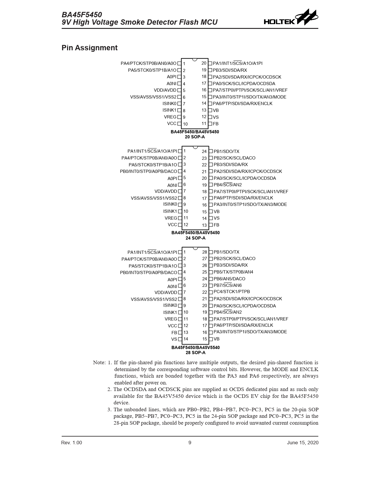 Pages / Page201 / 9 — BA45F5450. 9V High Voltage Smoke Detector Flash MCU. Pin Assignment. …