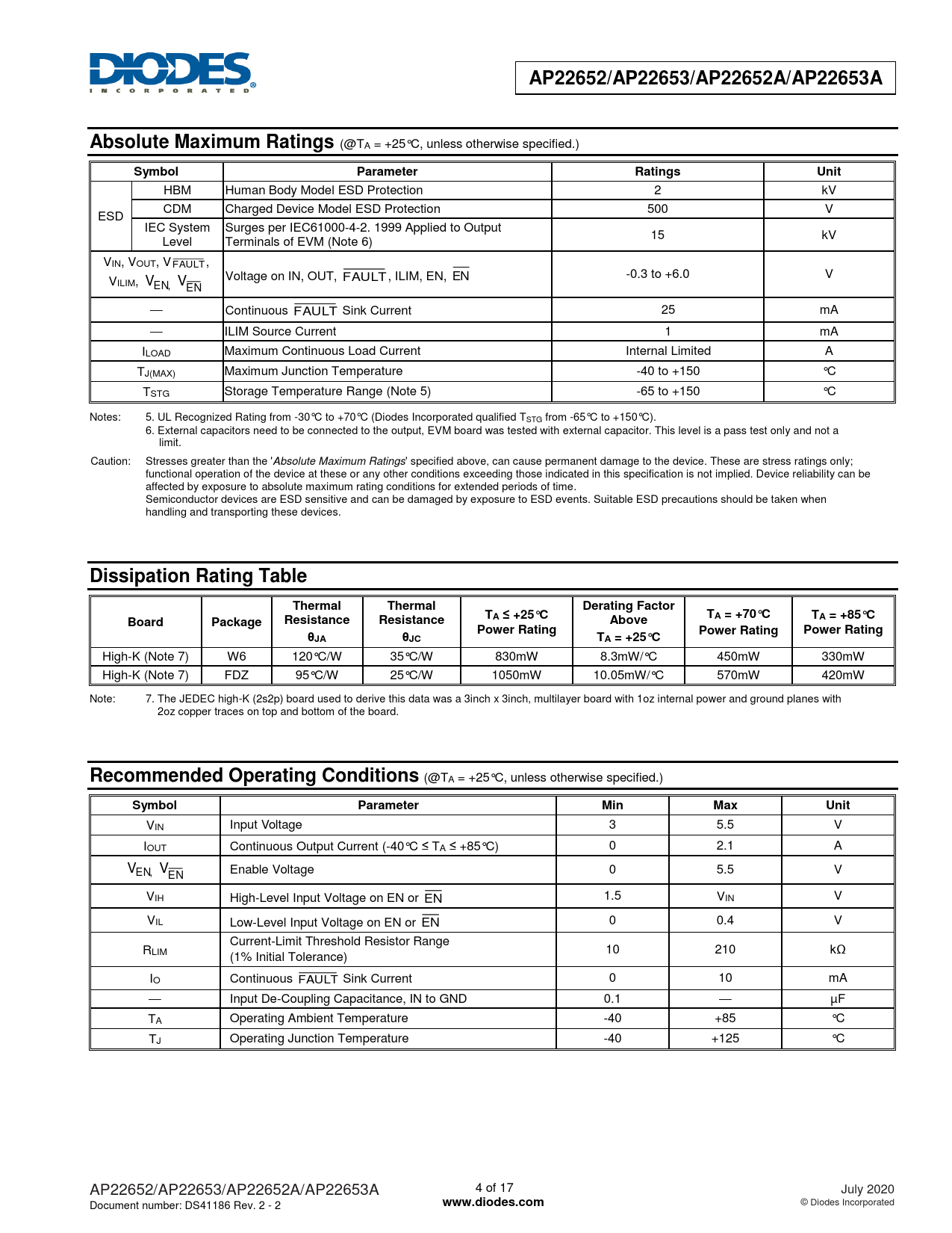 AP22652/AP22653/AP22652A/AP22653A. Absolute Maximum Ratings. Symbol. Parameter. Ratings. Unit. Dissipation Rating Table. Thermal