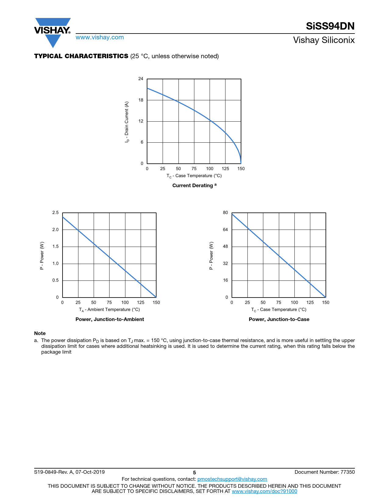 SiSS94DN. TYPICAL CHARACTERISTICS. Current Derating a. Power, Junction-to-Ambient. Power, Junction-to-Case. Note