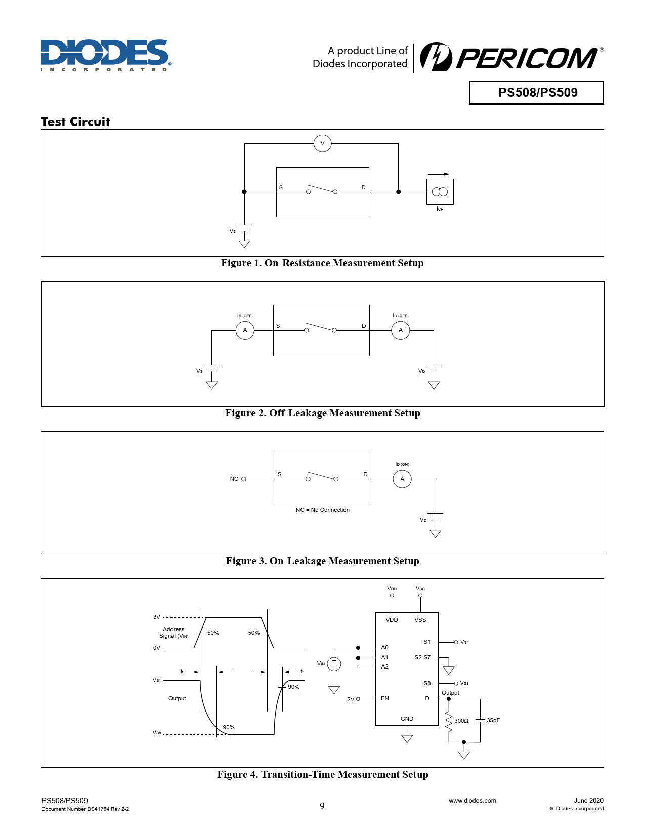 PS508/PS509. Test Circuit. Figure 1. On-Resistance Measurement Setup. Figure 2. Off-Leakage Measurement Setup
