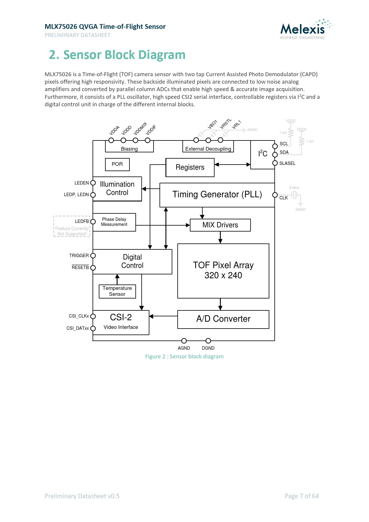 Pages / Page64 / 7 — MLX75026 QVGA Time-of-Flight Sensor. 2. Sensor Block Diagram