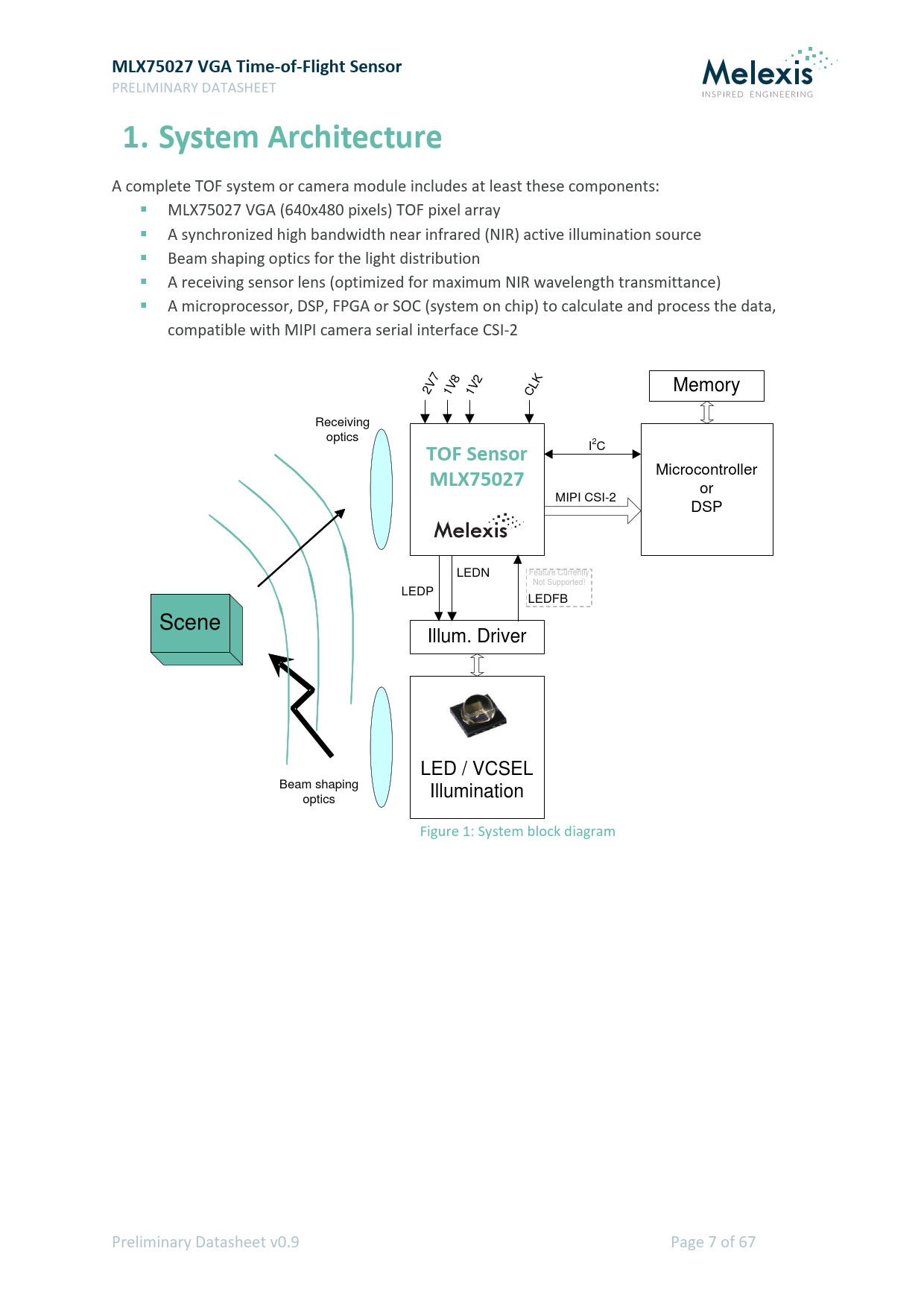 Pages / Page67 / 7 — MLX75027 VGA Time-of-Flight Sensor. 1. System Architecture. TOF Sensor. …