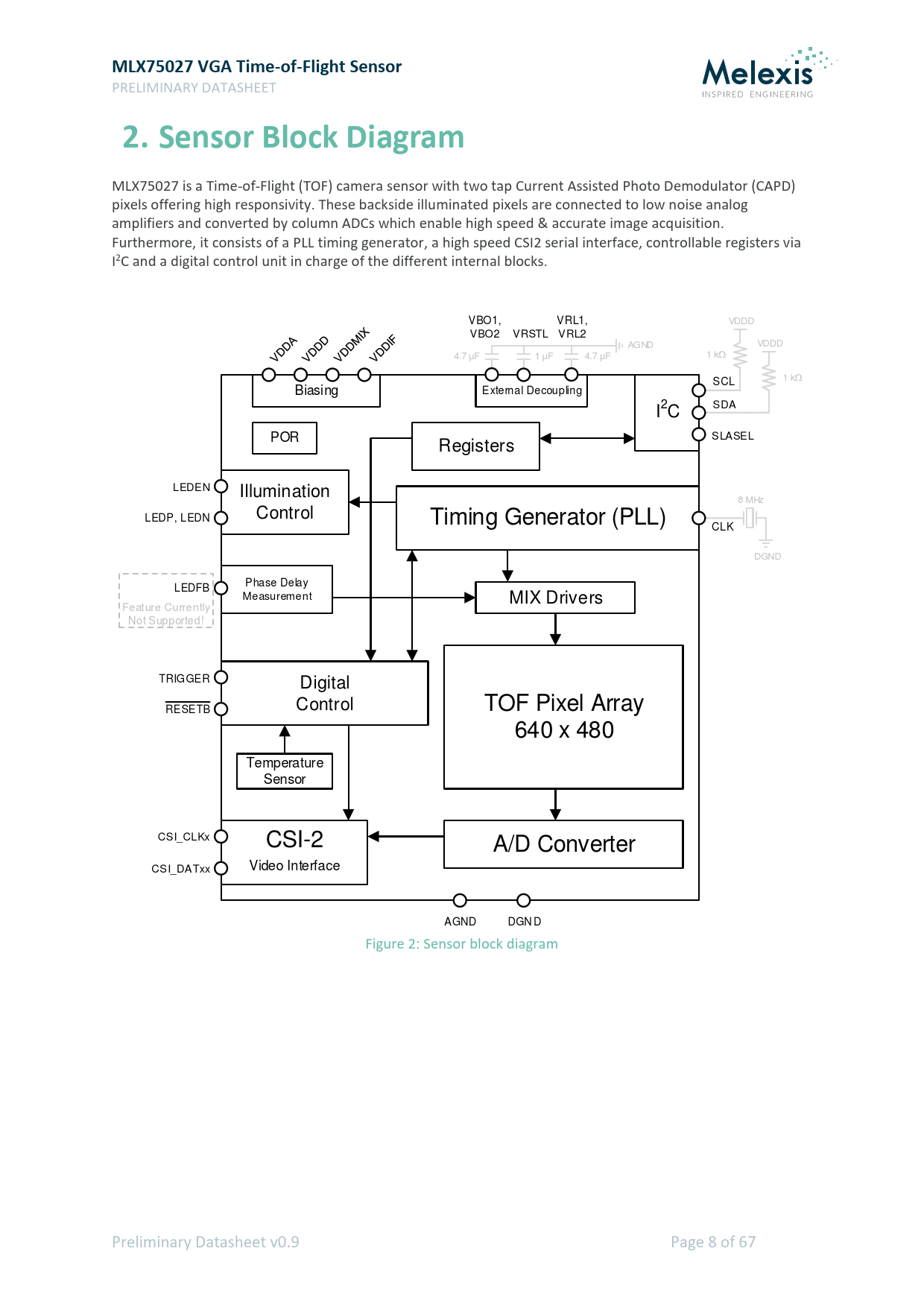 | Pages / Page | 67 / 8 — MLX75027 VGA Time-of-Flight Sensor. 2. Sensor Block Diagram |