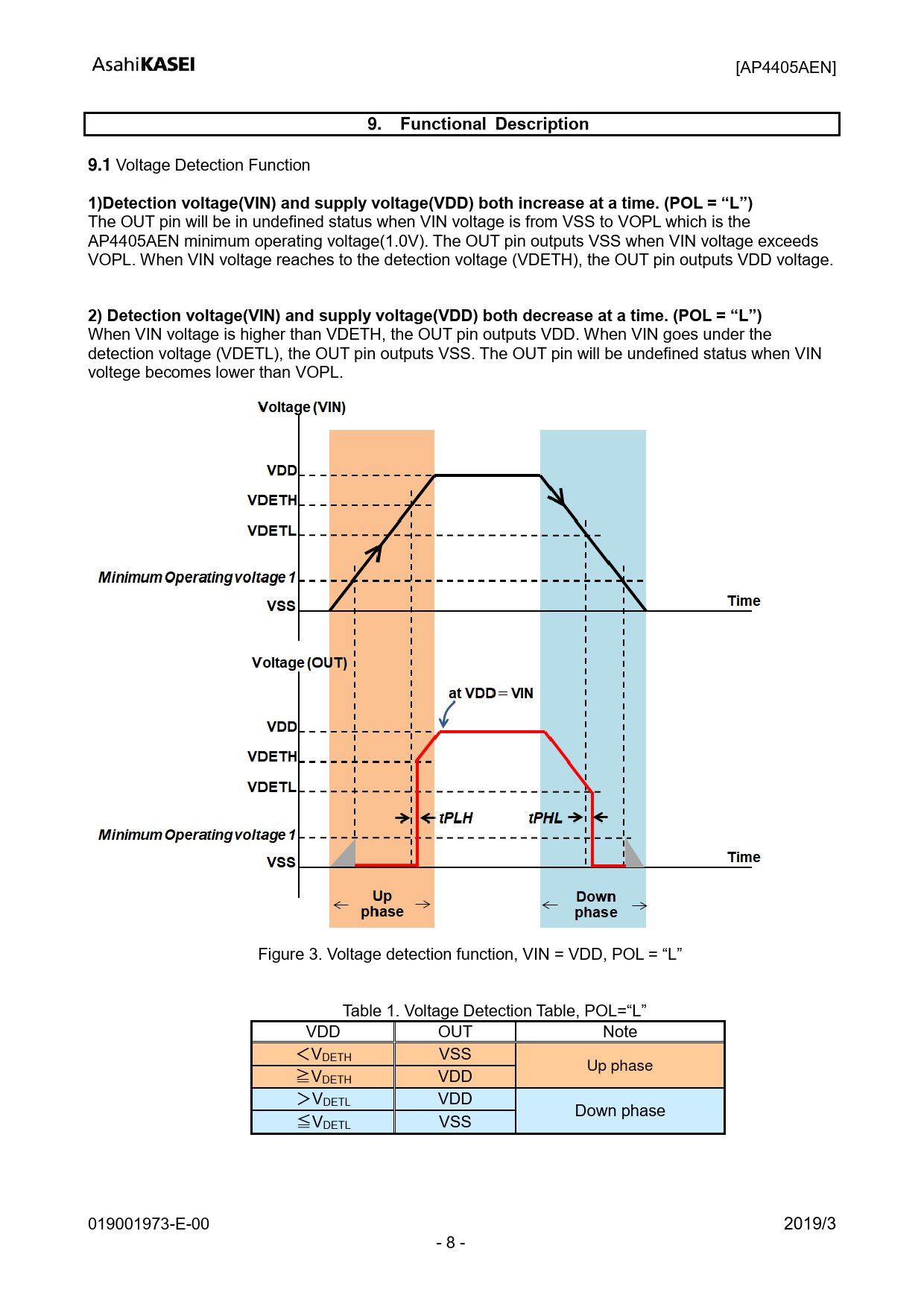 Pages / Page19 / 8 — 9. Functional Description. 9.1. 1)Detection voltage(VIN) and supply …