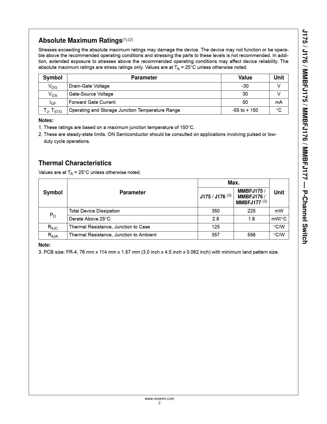 Datasheet J175, J176, MMBFJ175, MMBFJ176, MMBFJ177 (ON Semiconductor) - 2