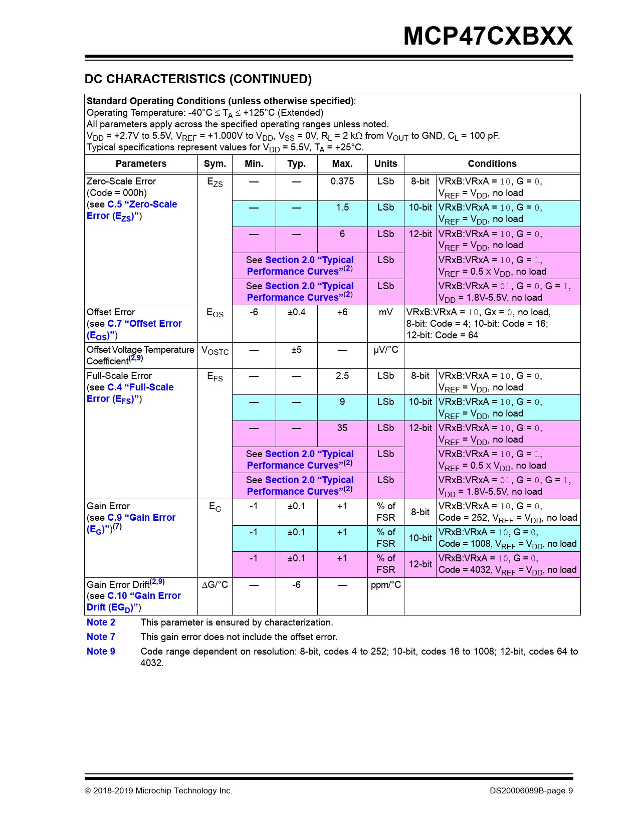 Pages / Page124 / 9 — MCP47CXBXX. DC CHARACTERISTICS (CONTINUED). Standard Operating Conditions …