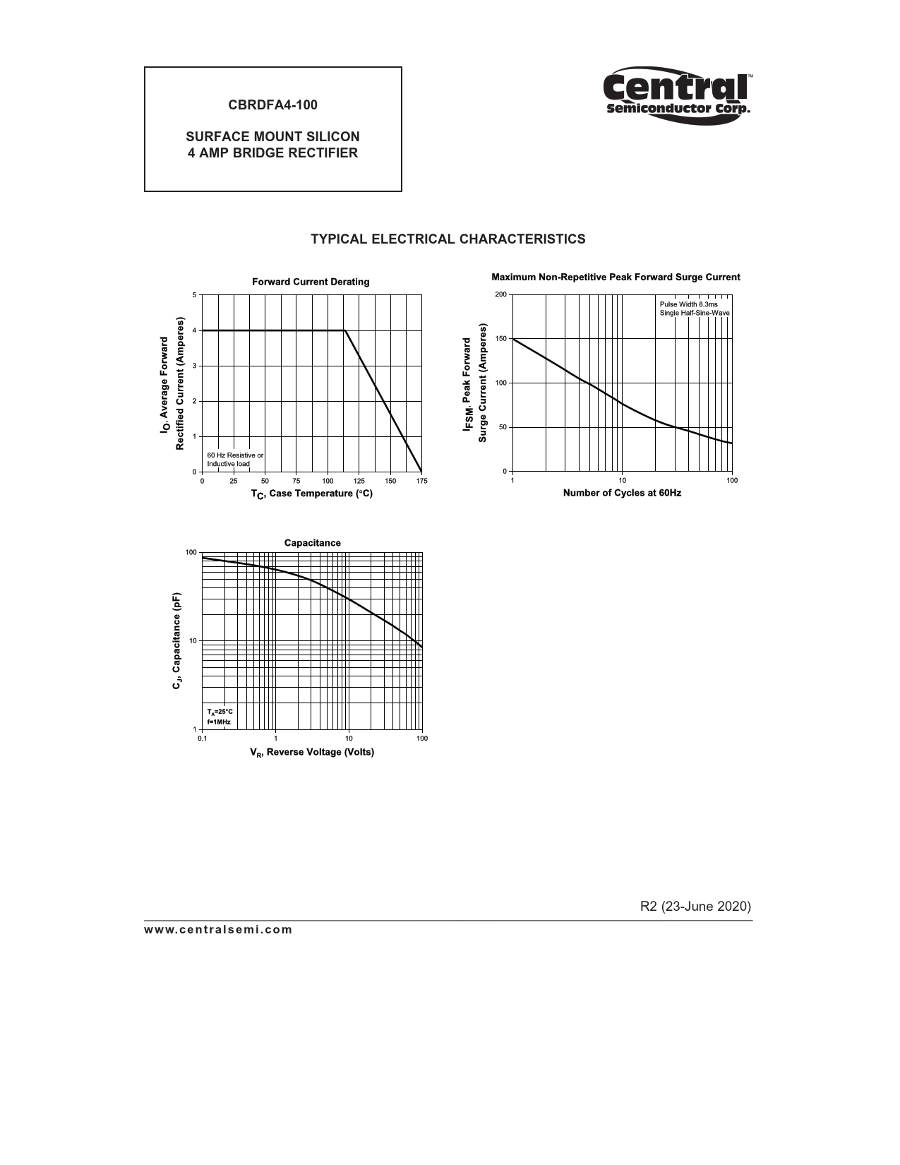 CBRDFA4-100. SURFACE MOUNT SILICON. 4 AMP BRIDGE RECTIFIER. TYPICAL ELECTRICAL CHARACTERISTICS