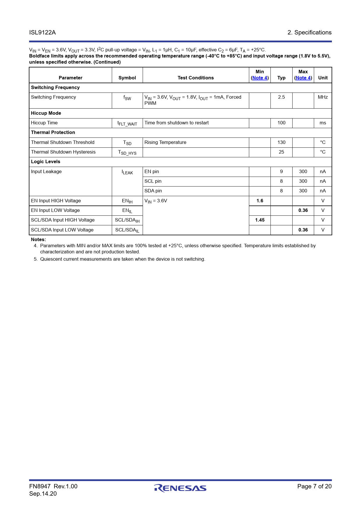 Datasheet ISL9122A (Renesas) - 7