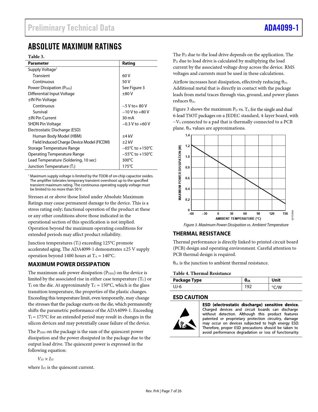 Pages / Page26 / 7 — Preliminary Technical Data. ADA4099-1. ABSOLUTE MAXIMUM RATINGS Table 3. …