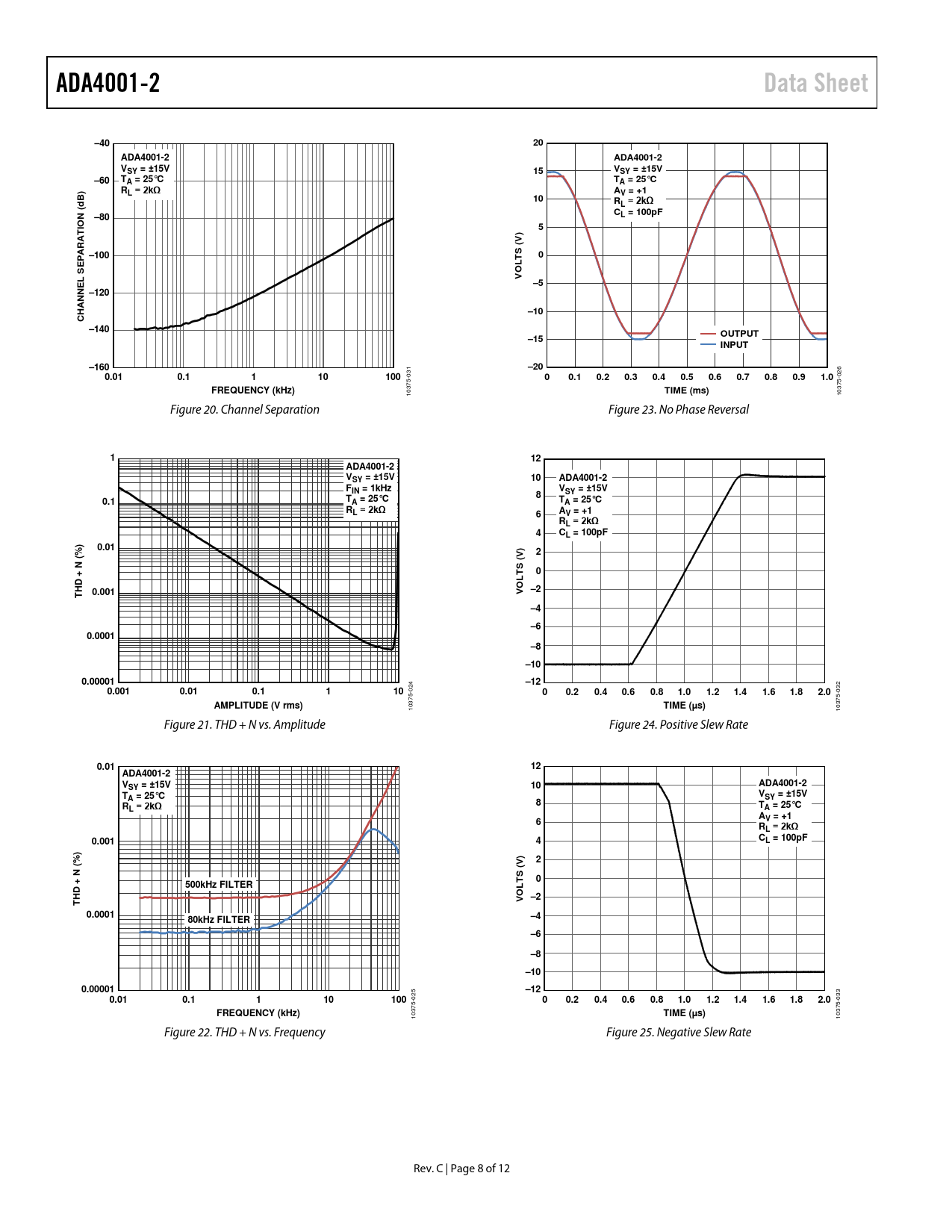 ADA4001-2. Data Sheet. –40. VSY = ±15V. –60. TA = 25°C. RL = 2kΩ. AV = +1. N (. –80. L = 100pF. ARAT. S (V). –100. S L. –120. –10. CHANNE. –140. OUTPUT. –15