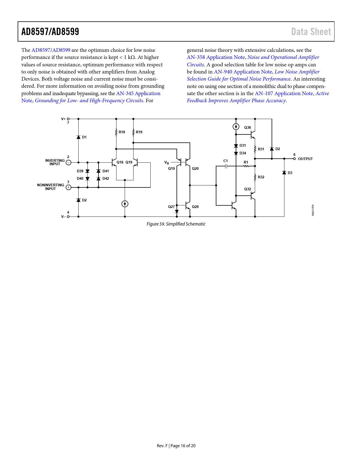 Pages / Page20 / 16 — AD8597/AD8599. Data Sheet. V+ 7. Q36. R18. R19. D31. R31. D34. OUTPUT. …