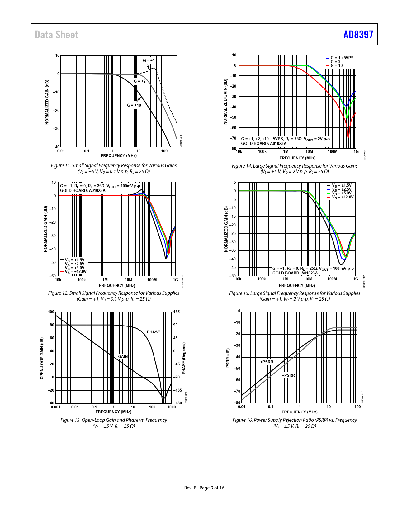 Data Sheet. AD8397. G = 1 ±5VPS. G = +1. G = 2. G = 10. –10. G = +2. B) d –20. N (. GAIN (dB). –30. D G E. G = +10. IZ –40. –20. AL RM –50. NORMALIZE. –60