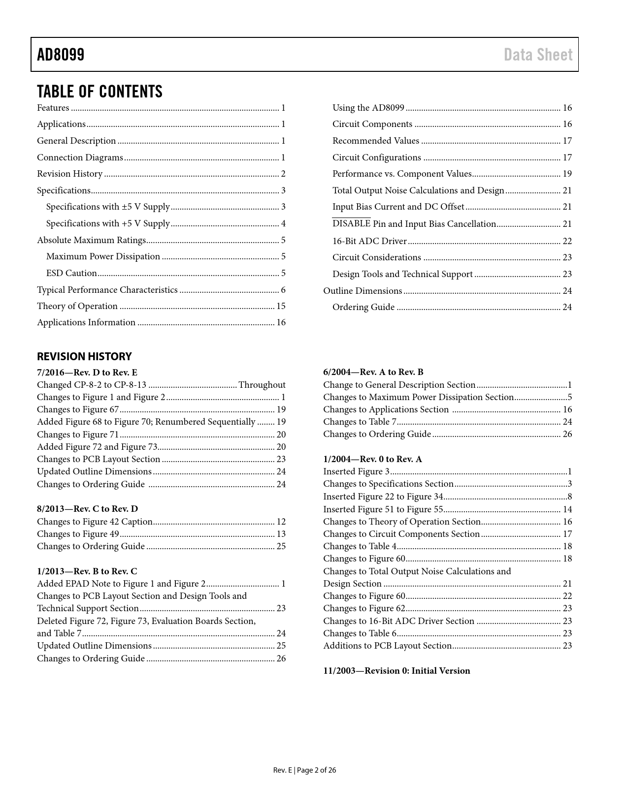 REVISION HISTORY 7/2016—Rev. D to Rev. E 6/2004—Rev. A to Rev. B