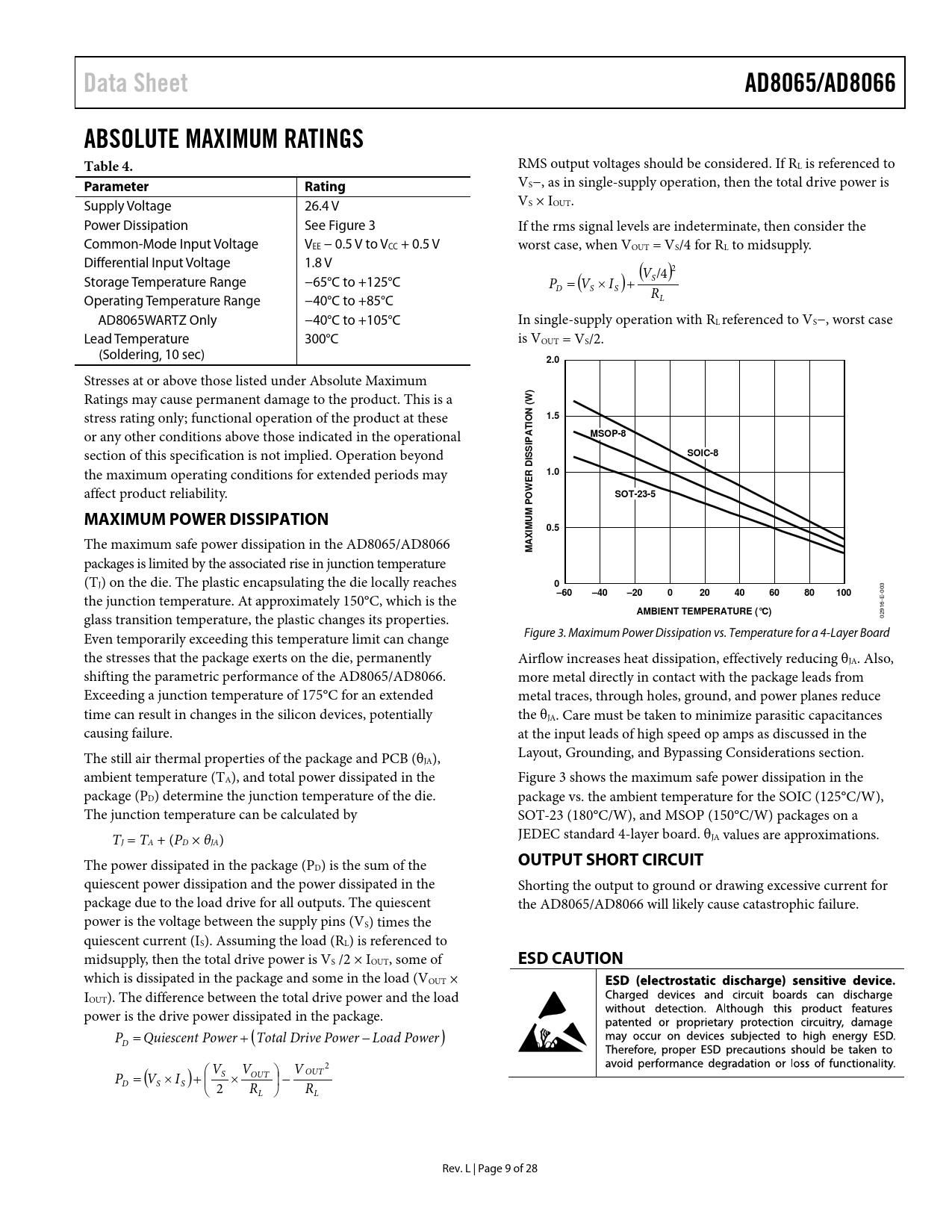 Pages / Page28 / 9 — Data Sheet. AD8065/AD8066. ABSOLUTE MAXIMUM RATINGS Table 4. Parameter. …