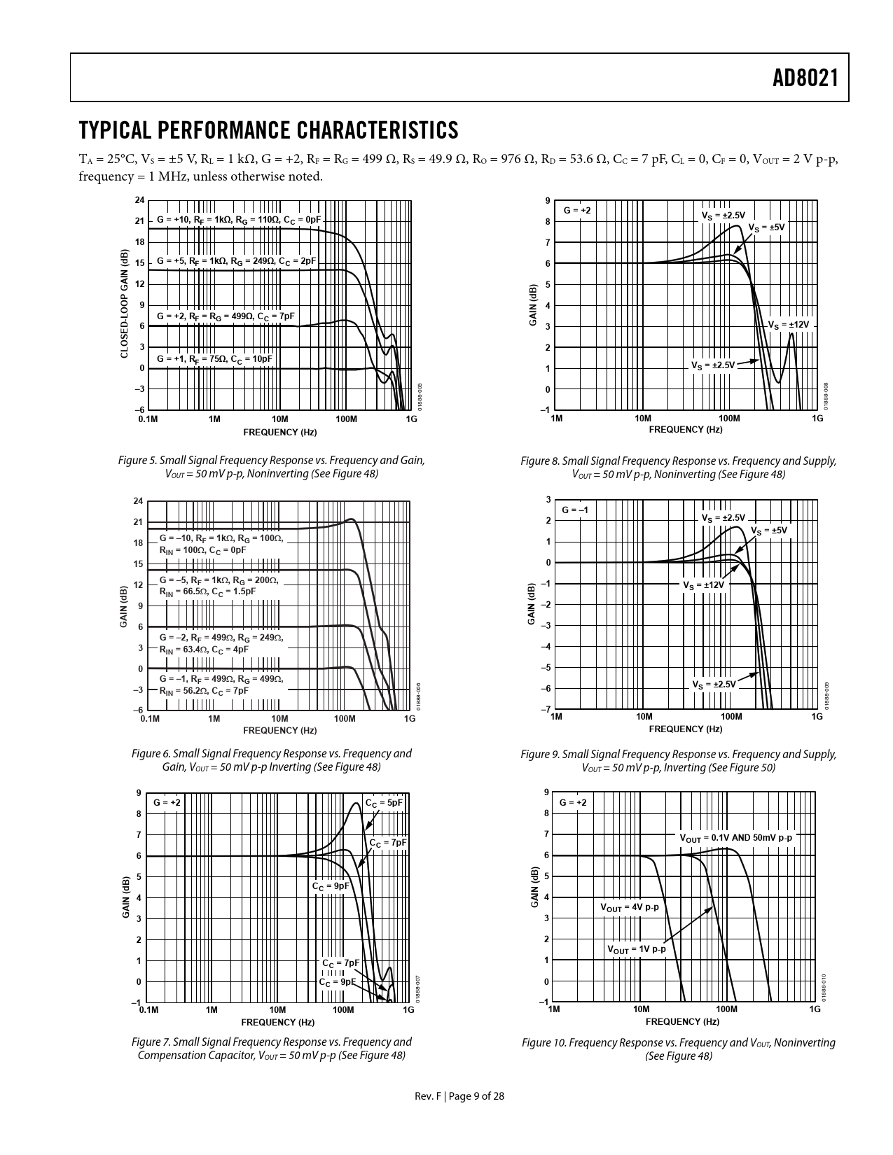| Pages / Page | 28 / 9 — AD8021. TYPICAL PERFORMANCE CHARACTERISTICS. G = +2. G = +10, RF = 1kΩ, … |