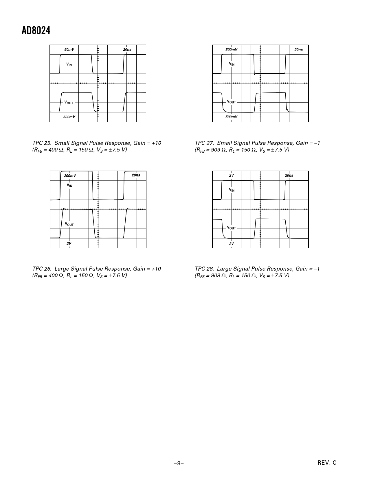 | Pages / Page | 12 / 8 — AD8024. 50mV. 20ns. 500mV. OUT. 200mV. VIN. VOUT |