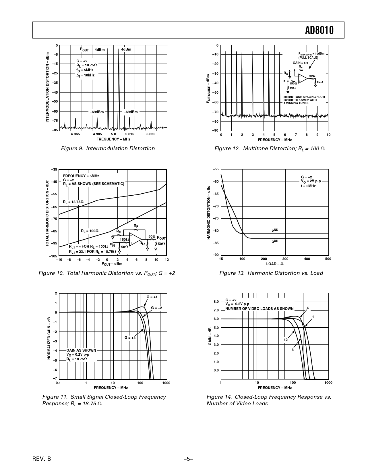 AD8010. POUT. 4dBm. –10. PMEASURE = 10dBm (FULL SCALE). dBm –. G = +2. –15. GAIN = 6.6. –20. L = 18.75. –25. O = 5MHz. –30. f = 10kHz. –35. dBm. – –40. 150