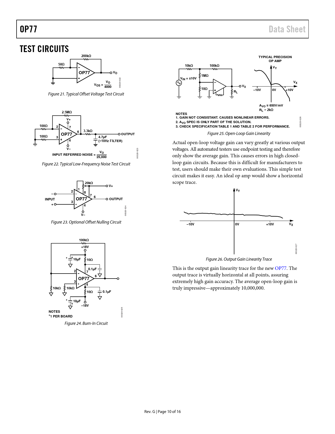 Pages / Page16 / 10 — OP77. Data Sheet. TEST CIRCUITS 200kΩ. TYPICAL PRECISION. OP AMP. 50Ω. …