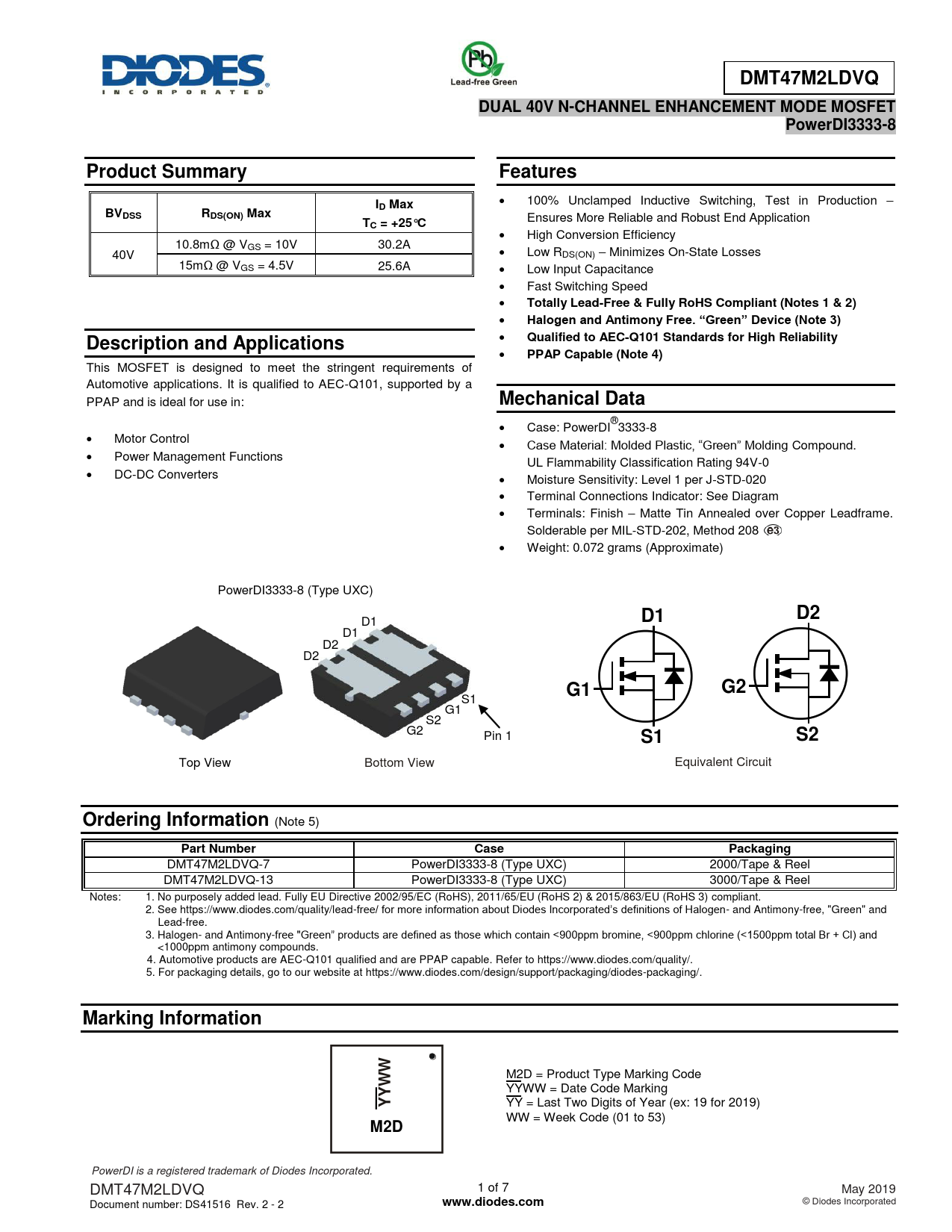 PowerDI is a registered trademark of Diodes I ncorporated. DMT47M2LDVQ 1 of 7 May 2019 Document number: DS41516 Rev. 2 - 2