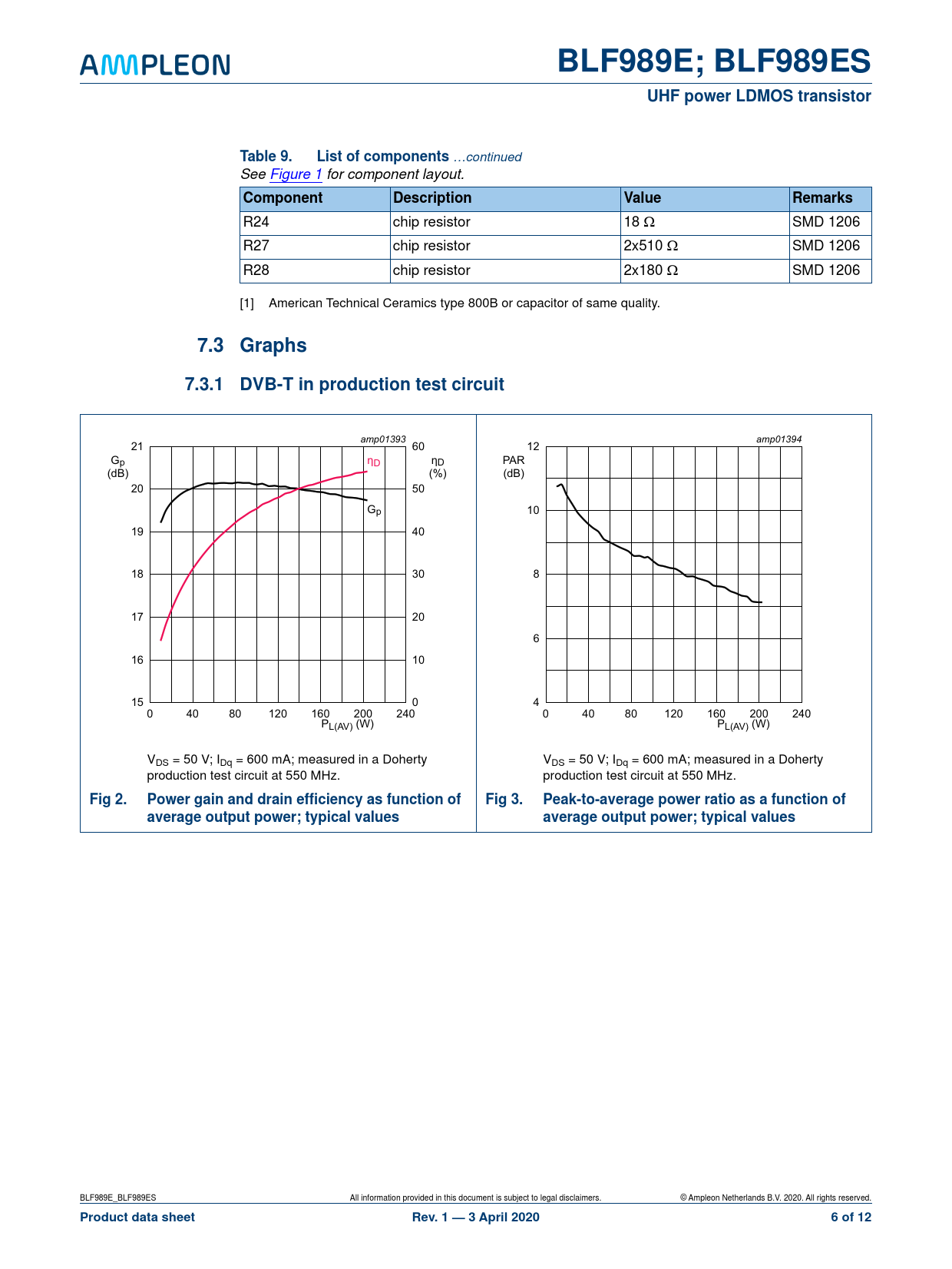 BLF989E; BLF989ES. UHF power LDMOS transistor. Table 9. List of components. Component. Description. Value. Remarks. 7.3 Graphs