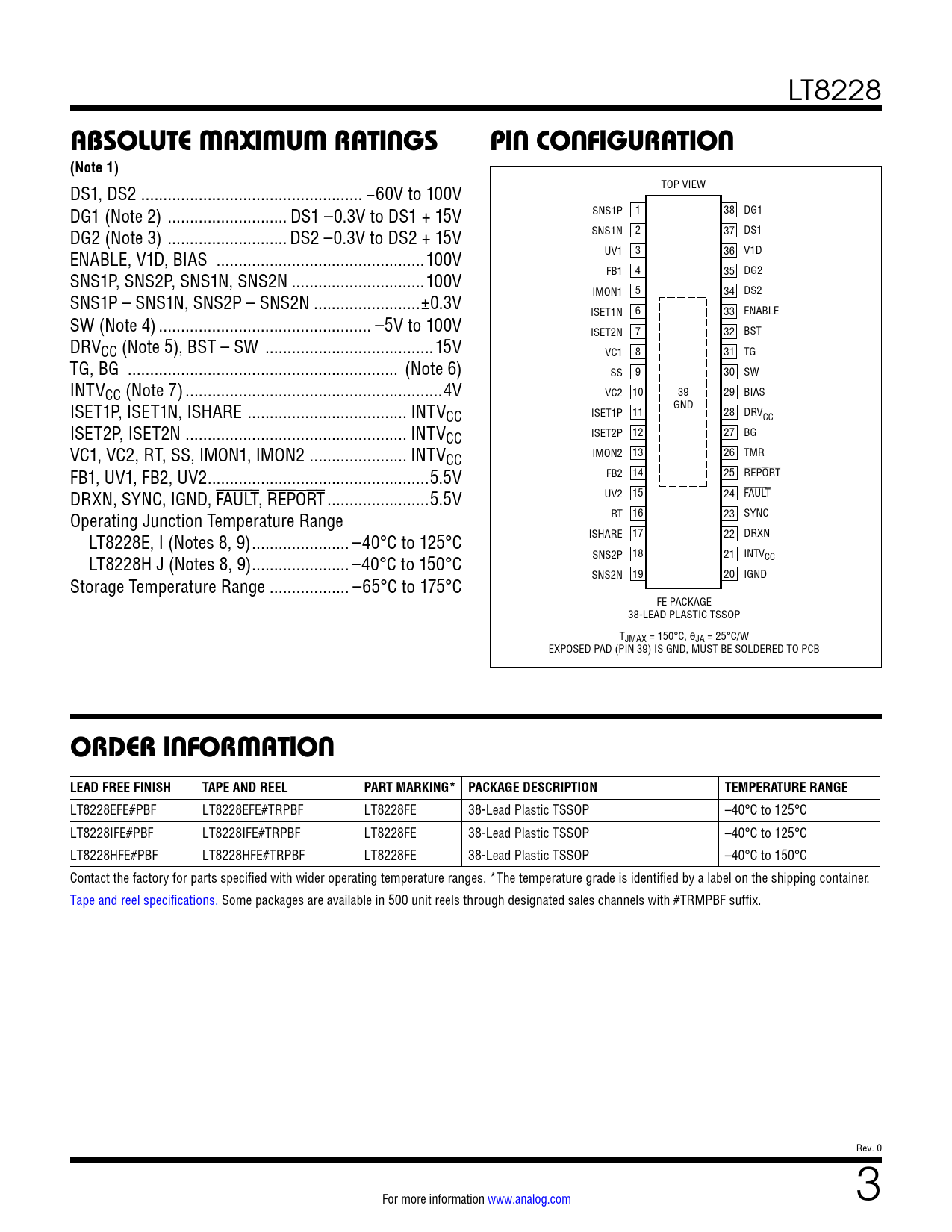 ABSOLUTE MAXIMUM RATINGS. PIN CONFIGURATION. (Note 1). ORDER INFORMATION LEAD FREE FINISH. TAPE AND REEL