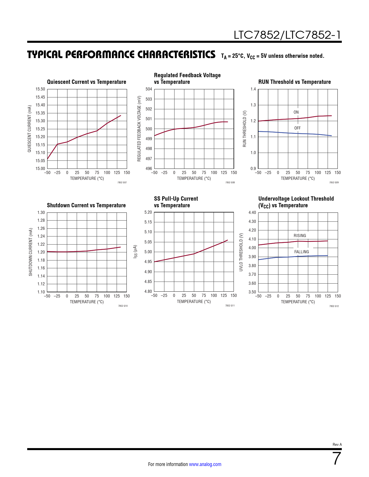 15.50 504 1.4 15.45 503 15.40 1.3 502 15.35 TAGE (mV) ON 15.30 501 1.2 15.25 500 OFF 15.20 499 1.1 15.15 TED FEEDBACK VOL RUN THRESHOLD (V) QUIESCENT CURRENT (mA) 498 15.10 1.0 15.05 497 REGULA 15.00 496 0.9 –50 –25 0 25 50 75 100 125 150 –50 –25 0 25 50 75 100 125 150 –50 –25 0 25 50 75 100 125 150 TEMPERATURE (°C) TEMPERATURE (°C) TEMPERATURE (°C) 7852 G07 7852 G08 7852 G09