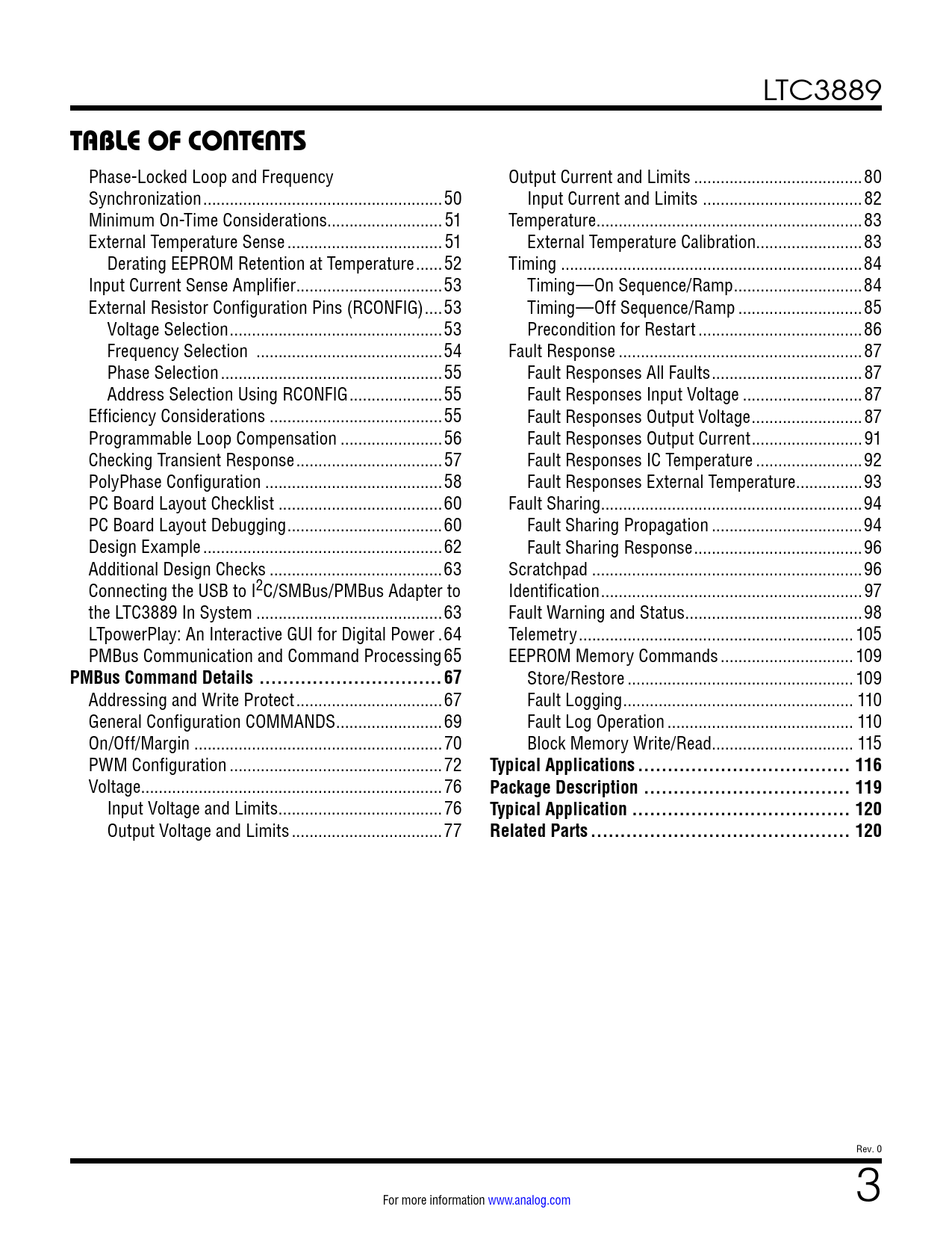 Pages / Page120 / 3 — TABLE OF CONTENTS. PMBus Command Details ...67. Typical Applications .. …