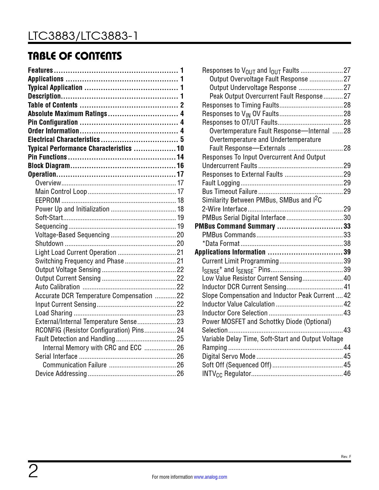 Datasheet LTC3883, LTC3883-1 (Analog Devices) - 2