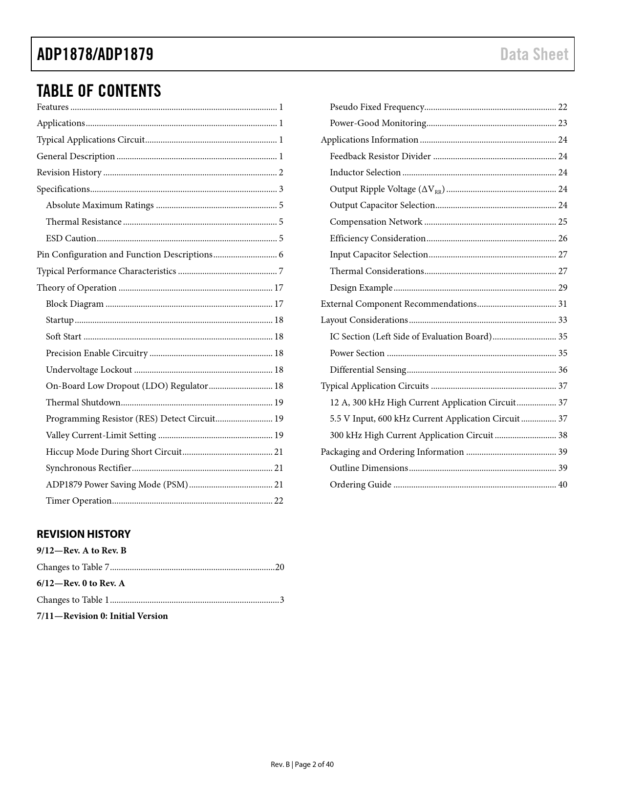 Pages / Page40 / 2 — ADP1878/ADP1879. Data Sheet. TABLE OF CONTENTS. REVISION HISTORY …