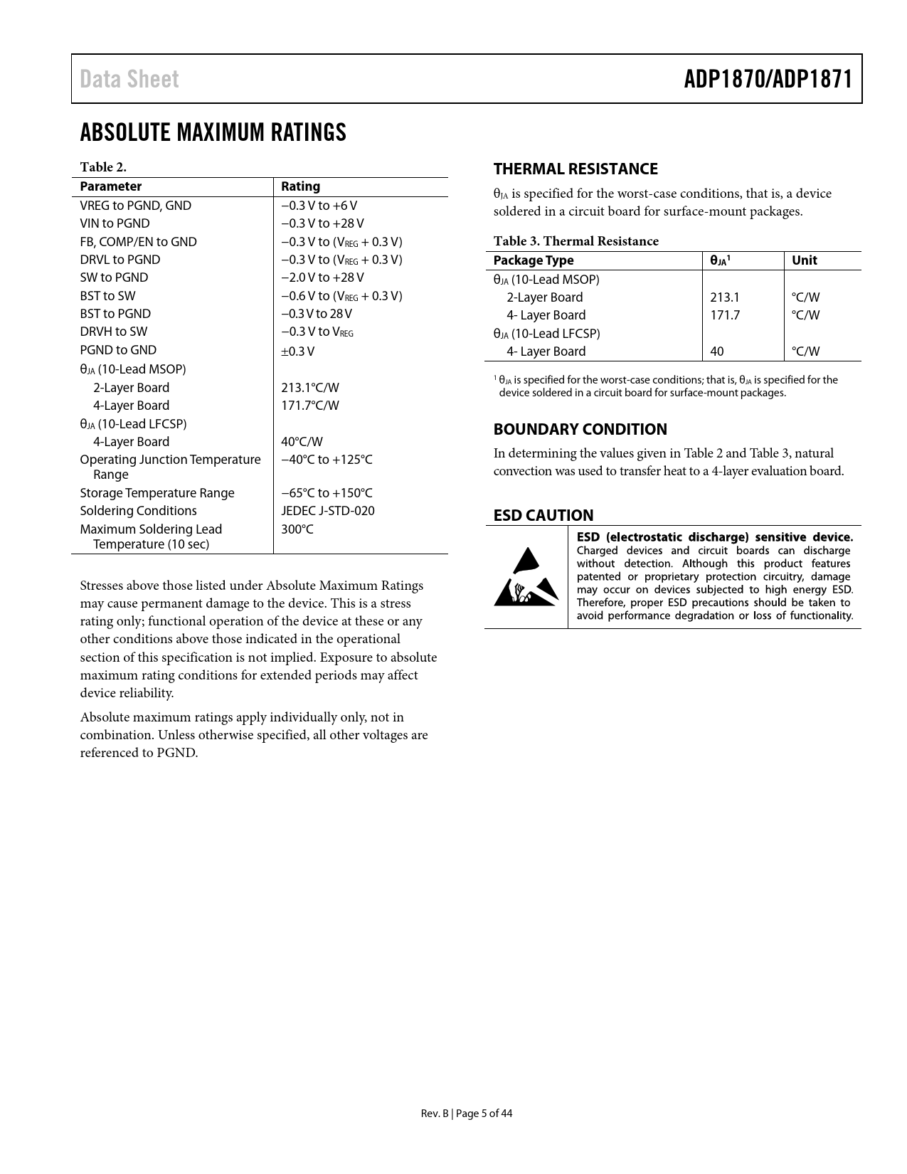 Pages / Page44 / 5 — Data Sheet. ADP1870/ADP1871. ABSOLUTE MAXIMUM RATINGS. Table 2. THERMAL …