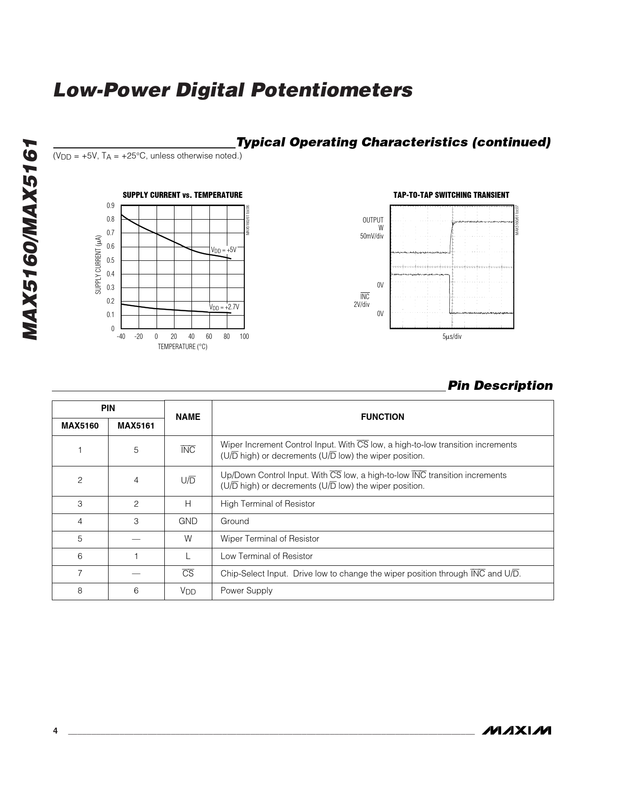 Pin Description PIN PIN NAME FUNCTION MAX5160 MAX5161