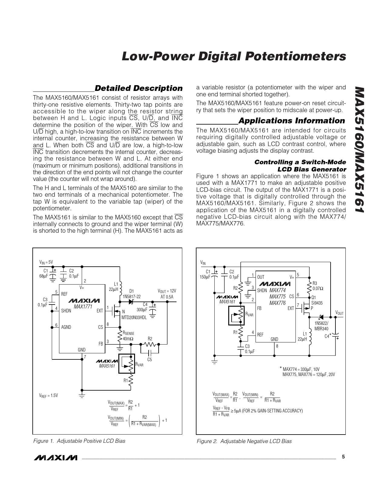 Pages / Page9 / 5 — Low-Power Digital Potentiometers. MAX5160/MAX5161. Detailed Description. …