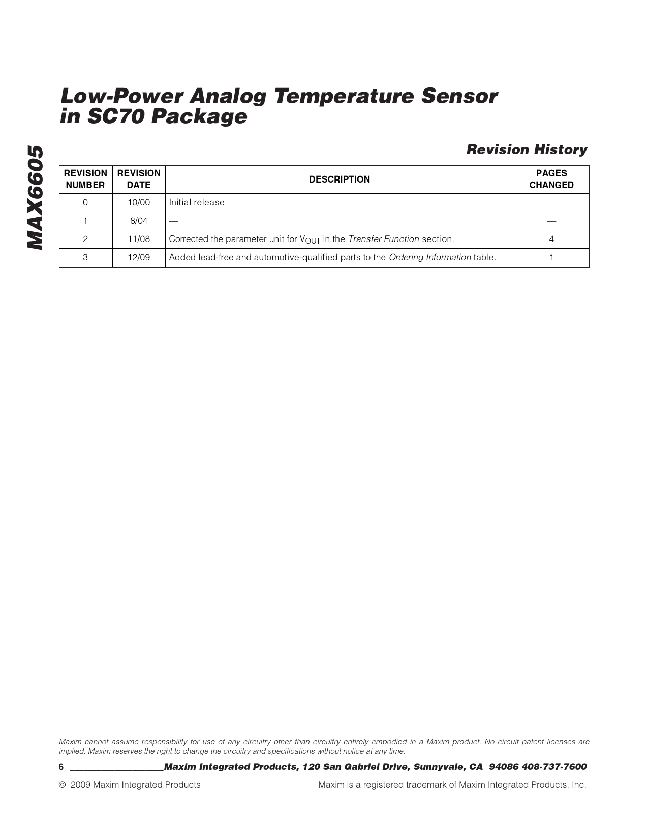 | Pages / Page | 6 / 6 — Low-Power Analog Temperature Sensor in SC70 Package. Revision History. … |