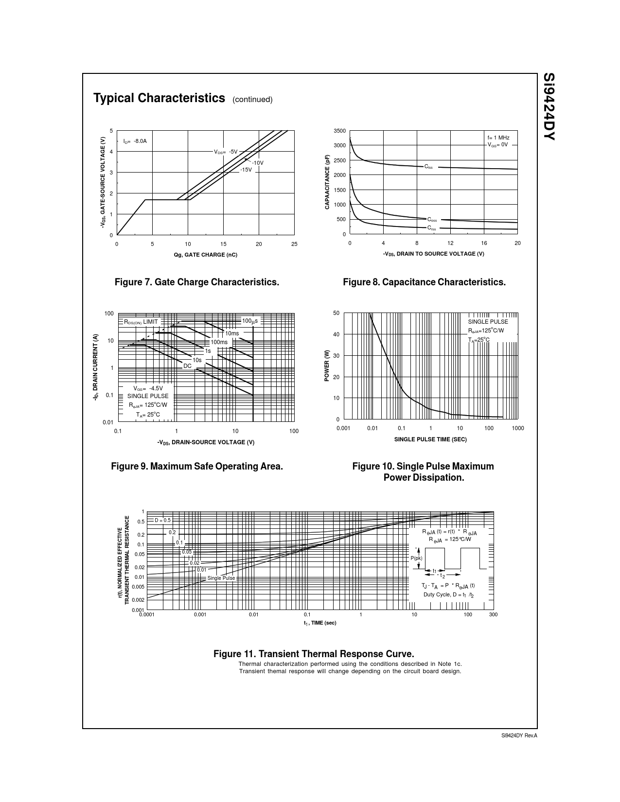 Thermal characterization performed using the conditions described in Note 1c. Transient themal response will change depending on the circuit board design. Si9424DY Rev.A