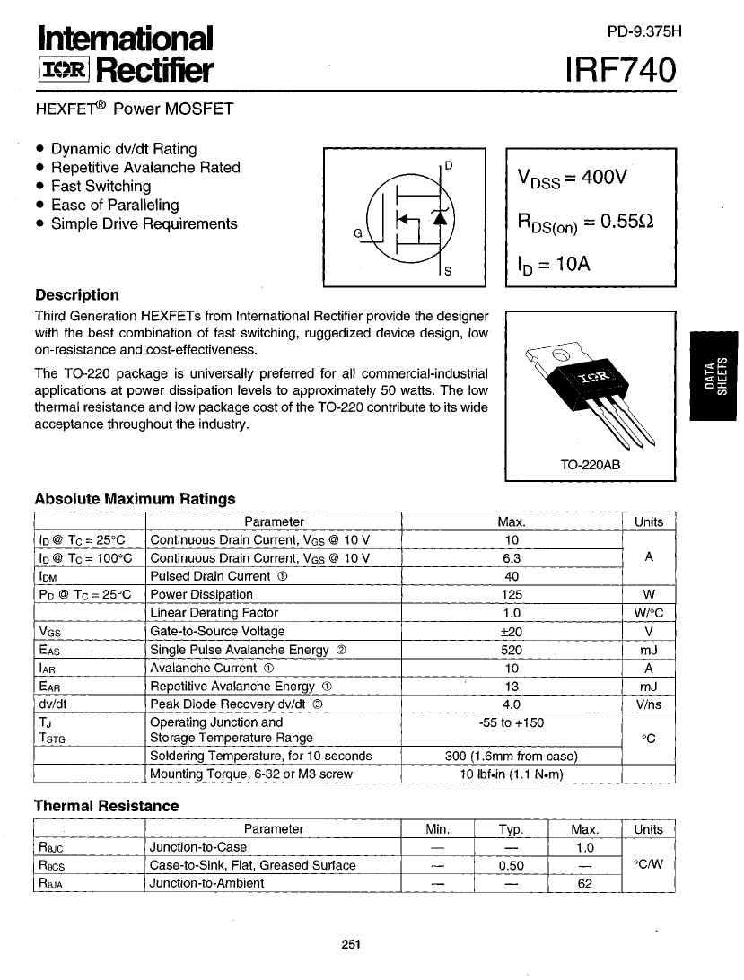 Datasheet IRF740 (International Rectifier)
