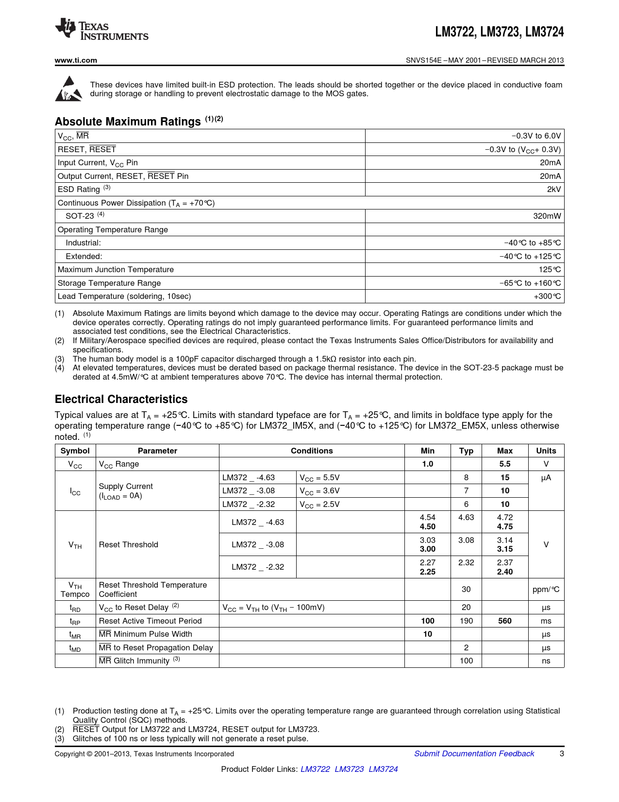 | Pages / Page | 20 / 3 — LM3722. , LM3723,. LM3724. www.ti.com. Absolute Maximum Ratings (1)(2). … |